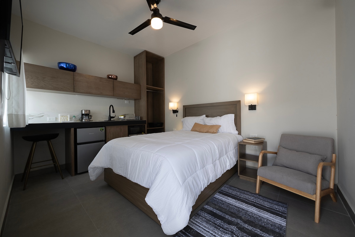 Welkom in onze mastersuite, modern en stijlvol op een toplocatie. Deze suite is ontworpen met jouw comfort in gedachten, met een kingsize bed en een ruime woonkamer, zodat je thuis kunt ontspannen. De suite is met zorg ingericht om een luxe en comfortervaring te bieden. Alles is onberispelijk schoon en klaar om van je verblijf te genieten. De ligging is perfect, dicht bij de beste restaurants, winkels en medische centra.