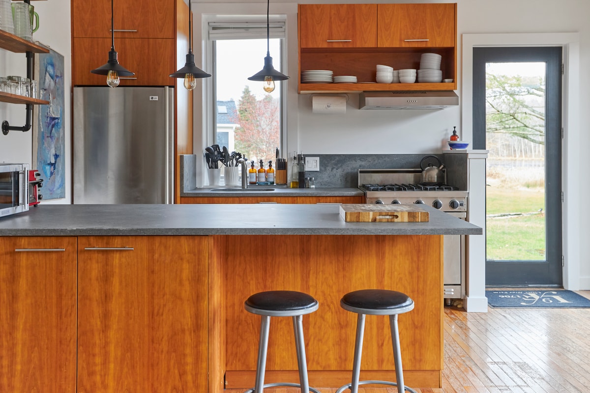 Bulls Head Cottage is a thoughtfully-designed retreat nestled within a 2.5 acre estate 5 minutes from Omega Institute and 10 minutes from the charming Village of Rhinebeck. The 720 square foot guest cottage is a relaxing place for up to 2 guests, offering cozy indoor and outdoor space including an office overlooking the property's pond. Enjoy quick access to hiking, shopping, fine dining and more. Under 2 hours from New York City by car or train. Pets not typically allowed.