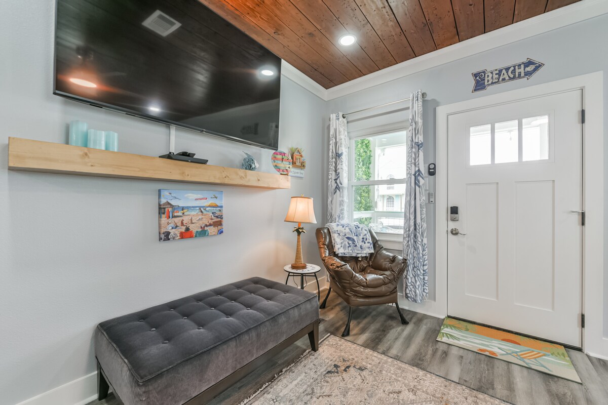Ontsnap naar een kustparadijs in dit charmante verblijf in Galveston, op loopafstand van Porretto Beach, en biedt een harmonieuze mix van klassieke architectuur en modern comfort. Met luchtige kamers, hardhouten vloeren en een serene palet nodigt elke ruimte uit tot ontspanning. Geniet van een kopje koffie op de turquoise veranda of ontspan in de elegant ingerichte woonruimtes. Dit is de perfecte uitvalsbasis voor een onvergetelijk toevluchtsoord op het eiland.