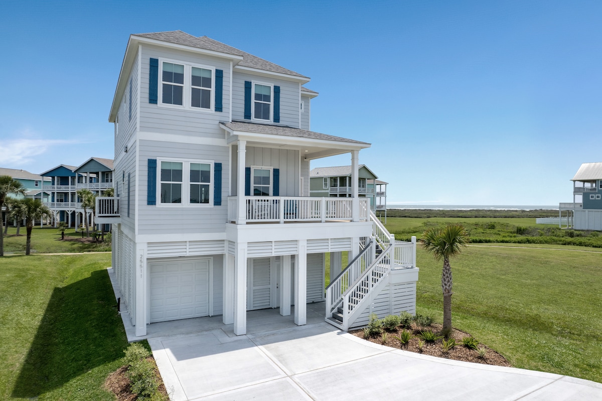 Luxury meets coastal charm in Galveston’s Beachside Village. Just steps from the private beach, this immaculate home boasts high-end upgrades: a gourmet kitchen with 15-ft island, exotic granite, and gas cooktop. Relax in style with a 3-story elevator, pool table, NBA Jam arcade, and sweeping views. Sleeps 12 with 2 King suites, 2 Queens, and 4 Twins. Perfect for refined gatherings, family escapes, or beachside entertaining in one of Galveston’s most exclusive neighborhoods. Permit No. GVR15367