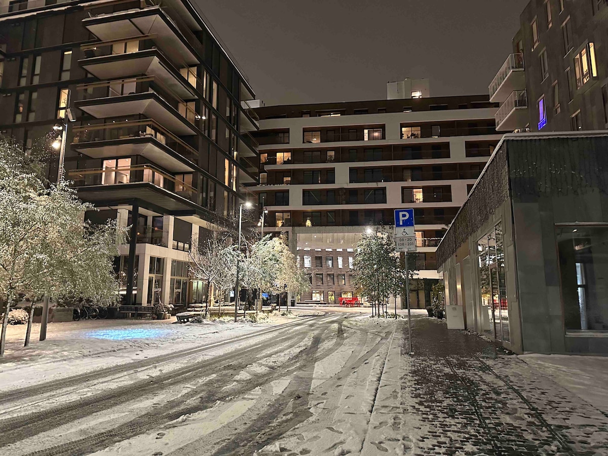 Welkom bij Bjørvika, Oslo! Omarm het stadsleven op zijn best - op steenworp afstand van de populairste bezienswaardigheden van de stad. Het dakterras biedt een prachtig uitzicht op de stad. Dit moderne appartement is voltooid in 2023 en is je perfecte toevluchtsoord. Centraal gelegen in de buurt van Opera, Munch Museum en Centraal Station. Volledig uitgerust, gezellige 2-slaapkamer met balkon. Verwarming, Nespresso, wifi en tv. Barcodegebied heeft indrukwekkende architectuur, met restaurants, cafés en winkels om te verkennen.