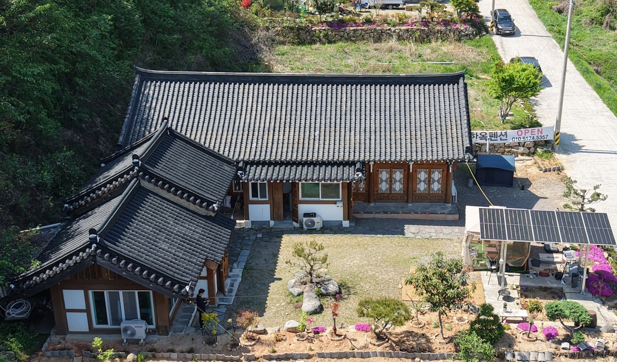 We hebben aandacht besteed aan een comfortabele en gezonde rust met het gebruik van traditionele Gudeulbang, loess vloer en bonen hanji board milieuvriendelijk. Je kunt de sfeer voelen van een traditioneel Koreaans traditioneel huis, zoals het dak met acht richtingen, de gelaagde dakranden, de Numaru, die stijl toevoegt aan de natuur. Neem een pauze van je dagelijkse routine in Numaru met uitzicht op zee. Drink een kopje thee met je geliefde en geniet van de wind. Vergeet het harde werk van de dag in de badkamer met een ruim bad.