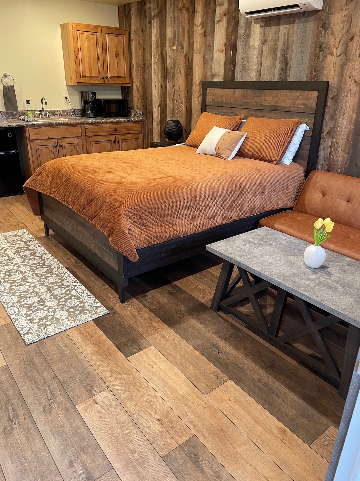 Deze rustiek mooie kingsize suite met twee slaapkamers is van alle gemakken voorzien. Met een volledig uitgeruste keuken, een grote luxe badkamer en een ruime, maar toch gezellige plattegrond. Geniet van de rijkdom van een kingsize bed in de ene slaapkamer en een queensize bed met een queensize slaapbank in de andere. Deze accommodatie heeft zeker alles wat je nodig hebt om je verblijf perfect te maken! Dit is een huisdiervrije woning. Er wordt een boete van $ 1000 in rekening gebracht als je een huisdier meeneemt naar deze woning.