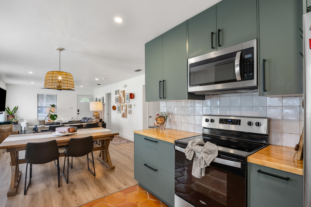 Stap terug in de tijd en ervaar de elegantie van modern design uit het midden van de vorige eeuw in ons stijlvolle huis met 3 bedden en 2 badkamers. Deze retraite ligt op slechts enkele minuten van Circuit of the Americas (COTA) enTesla en biedt de perfecte mix van comfort en gemak. Ontspan in de ruime woonkamer, compleet met modern meubilair. Verzamel in de glamoureuze keuken. Ontspan na een dag verkennen in een van de comfortabele slaapkamers, elk met zorg ingericht. Of je nu juicht op races in COTA of door Tesla toert.