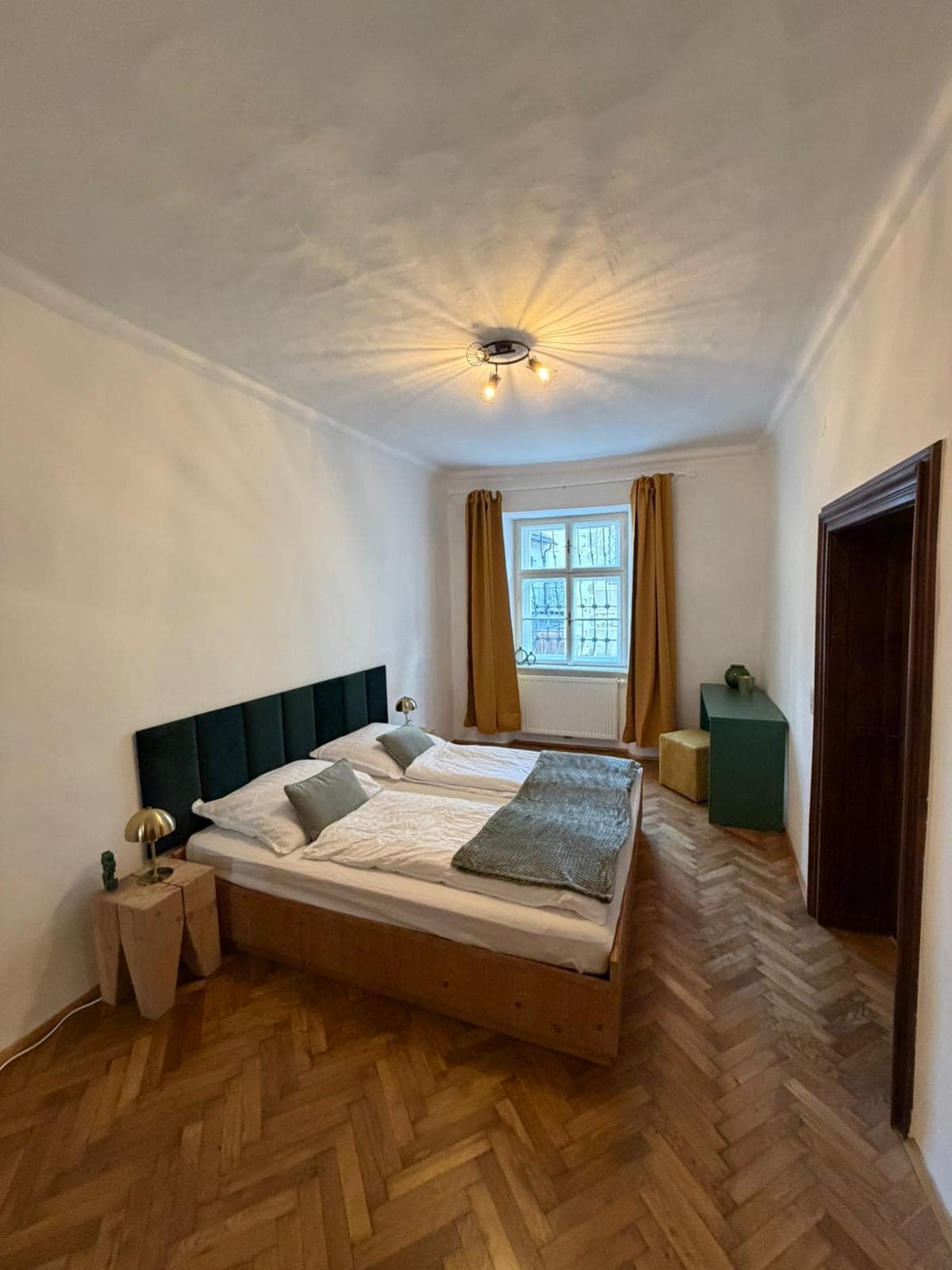 The 100 m² apartment is located on the first floor of an old, newly renovated city villa. The apartment has a special flair thanks to the 3.5 meter high walls and the light-flooded rooms. If you want to relax, this is the right place for you. The historic town square of Steyr with boutiques and restaurants, as well as the local recreation area on the river are only a 5 to 10 minute walk away. There are 3 sleeping accommodations in 3 different rooms. High speed internet (200 Mbps) is available