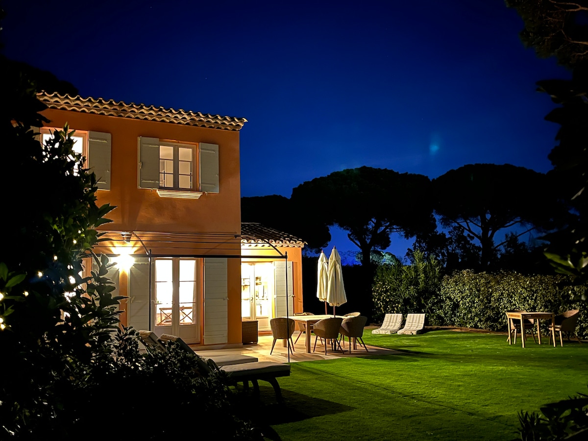 Verblijf in een uitzonderlijk chalet dat Californische stijl en Tropeziaanse elegantie combineert, gelegen in een veilig en bosrijk park, dicht bij Saint-Tropez , Provençaalse stranden en dorpen, geniet van twee comfortabele en verfijnde slaapkamers, een privézwembad en een groot terras voor unieke momenten van ontspanning met familie of privacy. Ruime en eigentijdse rustige omgeving, ideaal voor een onvergetelijk uitje. Lagunezwembad, restaurant, bar, kapper, massage, tennis