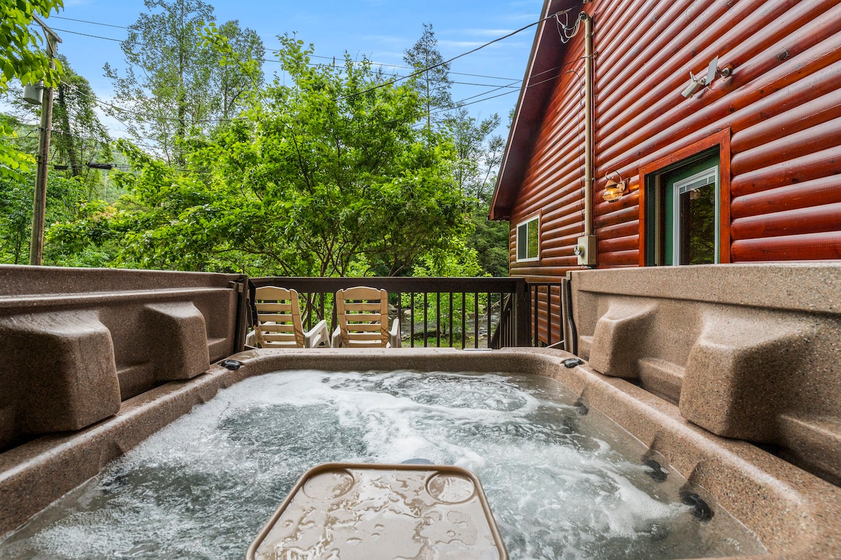 ✦Riverside Retreat Cabin, Kenmerken✦ ✦LOCATIE! LOOP naar Gatlinburg Strip (slechts 6 minuten lopen)! Nabijgelegen trolleystop! *Geen steile wegen! ✦APPARTEMENT Parkeren voor 3! ✦Bubbelbad! ✦RUSTIGE, rustige, riviergeluiden vanaf het moment dat je aankomt! 8 ✦slaapplaatsen! ✦Rivierkant! Forelvissen ✦Wasmachine endroger ✦Gratis snelle wifi ✦Volledig uitgeruste keuken! ✦Binnengashaard! ✦Uitstekende recensies! ✦Loop naar: lokale restaurants, bergachtbaan, put-put golf, supermarkten, lokale winkels, het aquarium en nog veel meer