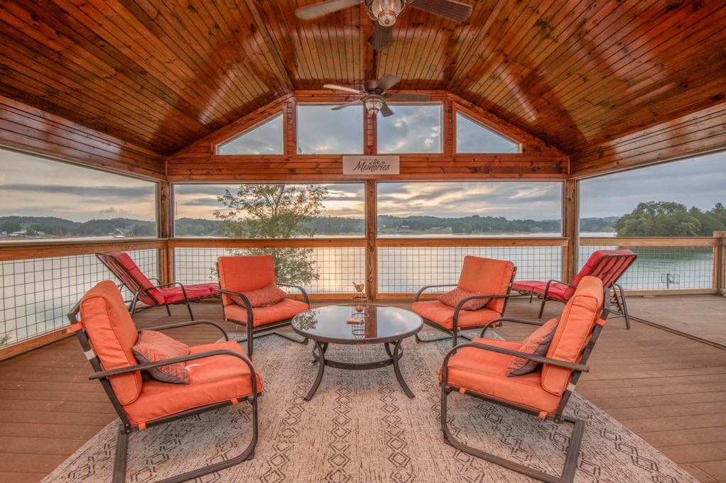 De hele bovenverdieping van deze luxe woning aan het meer is ontworpen voor jouw gebruik en plezier. Het uitzicht op de Smoky Mountains zijn de achtergrond van deze oase. Geniet van een vogelperspectief op het meer vanaf het bovendek. Gemakkelijk toegang tot het meer via trap of verharde weg. Neem al je waterspeelgoed mee en leg je boot aan of zwem in de baai met ons ponton als toegangspunt tot het meer. Gastronomische keuken en grote buitengrill maken koken leuk. Veel kleine apparaten beschikbaar voor het gebruik door gasten.