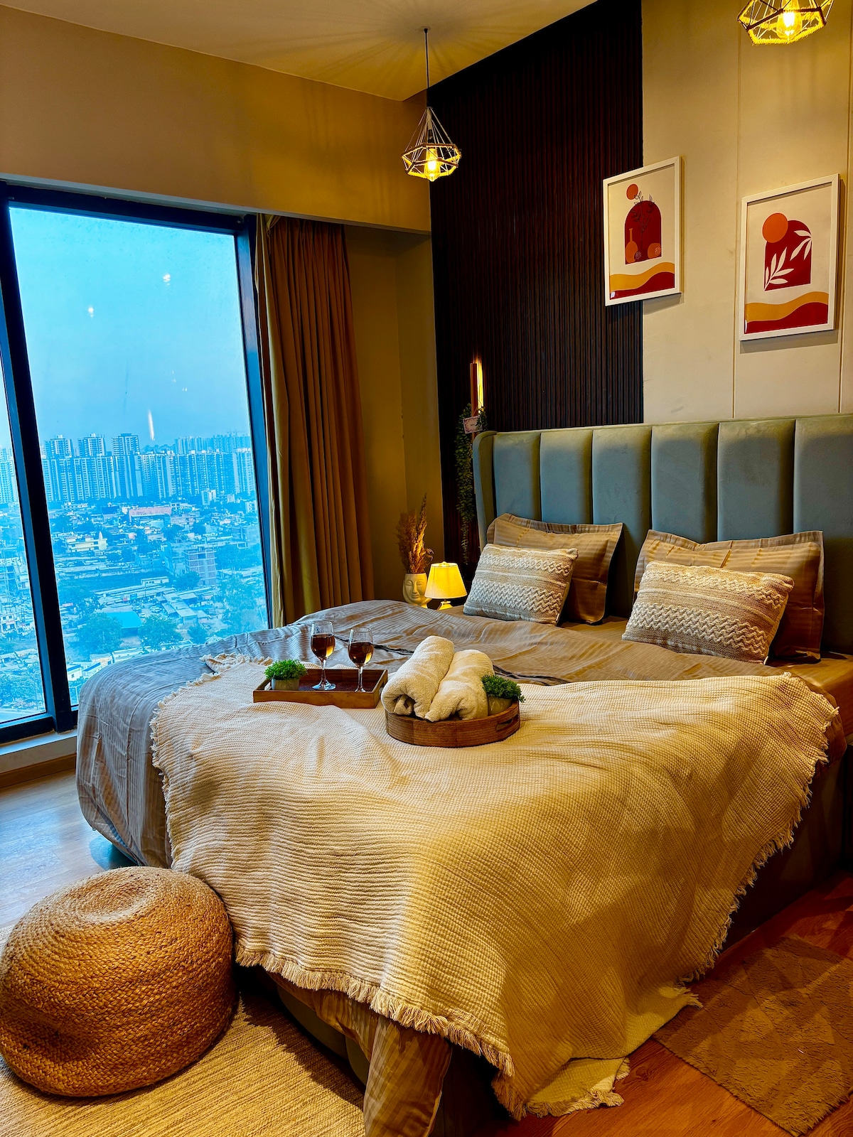 Welkom bij Valuura Stay, je rustgevende luxe-boho-ontsnapping in Galaxy Blue Sapphire, Greater Noida. Deze studio is ontworpen in zachte nude, witte en warme bruine tinten en combineert 5-sterrenhotelcomfort met een warme, rustige huiselijke sfeer. Perfect voor koppels, zakenreizigers en iedereen die op zoek is naar een prachtig samengesteld, IG-waardig verblijf. Of je nu op bezoek bent voor werk, een weekendje weg, een shoppingreis of gewoon een gezellige vakantie, deze studio biedt je de perfecte mix van luxe, gemak en comfort.