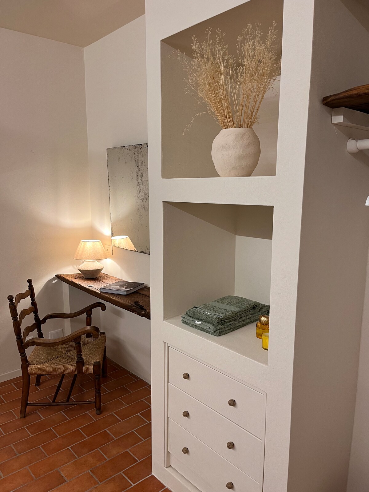 Alleen natuurliefhebbers. De oude boerderij Pieve di Caminino, biologisch, is een belangrijke historische site: een voormalige middeleeuwse kerk gebouwd op het kruispunt van twee Romeinse straten, het was de thuisbasis van twee heiligen (de 12e-eeuwse kerk is nu een privémuseum, dat op afspraak door gasten kan worden bezocht). Tegenwoordig beslaat het 200 hectare omheind privéterrein, gelegen op een schilderachtige heuvel. Zeven woningen delen een landgoed met een (seizoensgebonden) zwembad, twee vijvers, een eeuwenoude olijfgaard, wijngaard en een kurkbos.