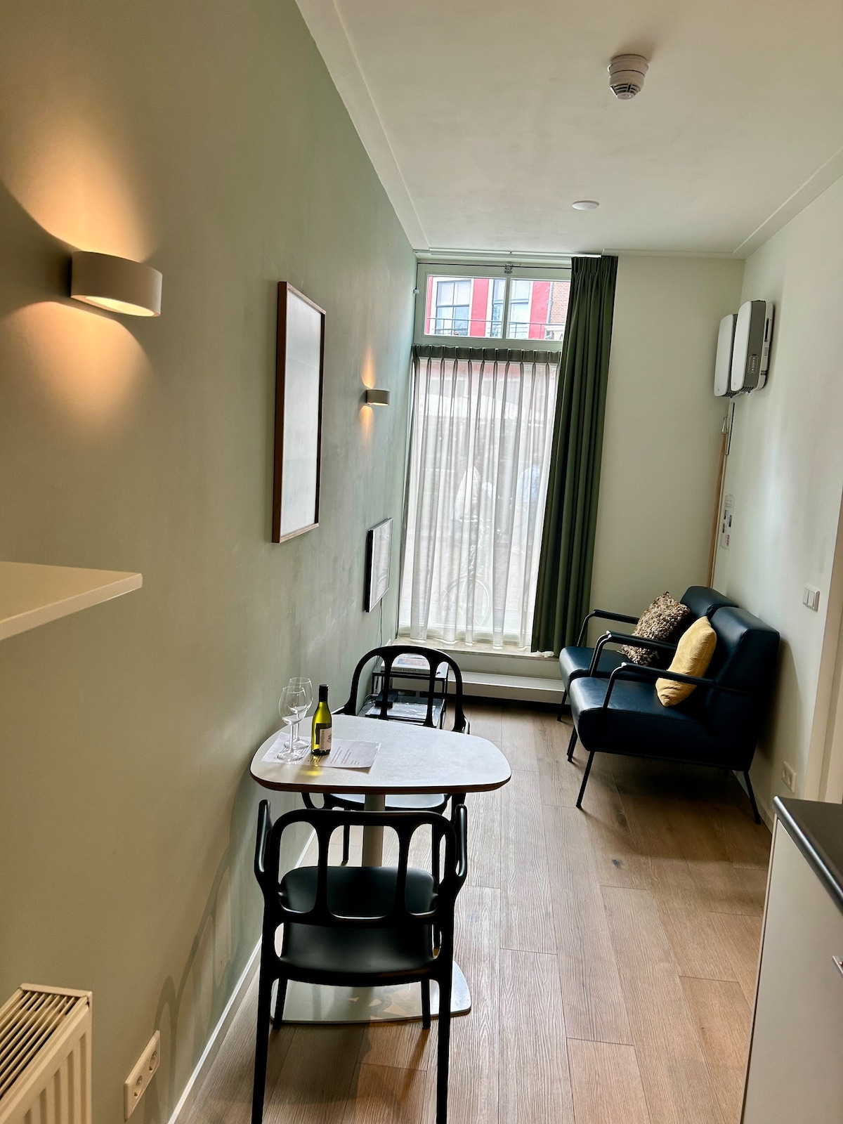 Deze studio met 1 tweepersoonsbed en 1 eenpersoonsbed is ruim 30 m2 groot en heeft aan 3 zijden glas en heeft daarom een prachtig uitzicht over het water en de stad Utrecht en is voorzien van alle luxe en gemak voor de jonge professional. Naast de luxe keuken en badkamer is er een aparte tafel met 2 comfortabele stoelen om te werken en te eten. Veel stopcontacten zijn uitgerust met een USB-aansluiting, zodat het opladen van elektronische apparaten overal in de studio mogelijk is. Het moderne 2 persoons boxspringbed heeft een ingebouwde verstelbare kleurverlichting in het hoofdeinde, zodat je je eigen sfeer in de kamer kunt bepalen.
