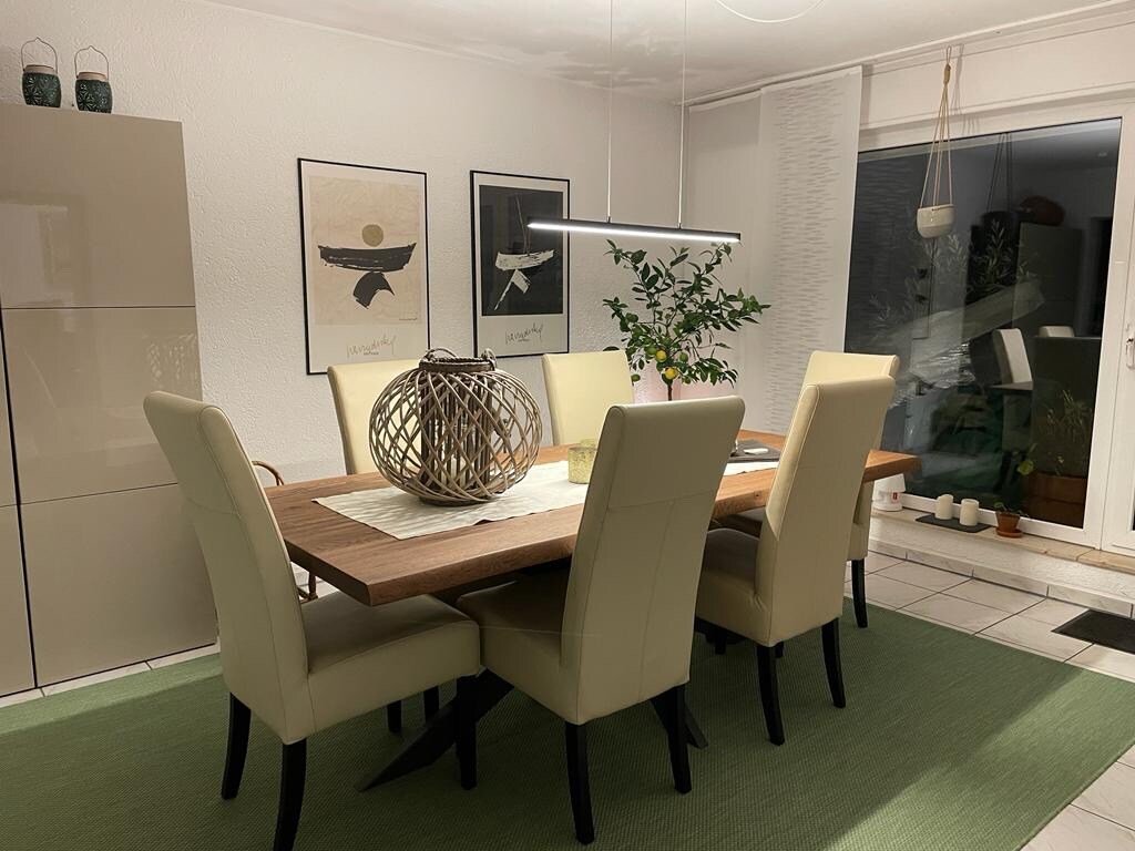 Komplett ausgestattete Wohnung im 1. Obergeschoss und Dachgeschoss unseres Hauses. 20 qm großer Balkon Süd/Westlage für sonnige und gemütliche Nachmittage und Abende. Ruhige Anliegerstraße, verkehrsgünstig - 3 Minuten bis zur A 42. 800 m bis zur Erzbahntrasse (überregionaler Radweg), 6 Golfplätze im Umkreis von 15 km. 6 Shopping Malls (u.a. Europas größtes Center) im Umkreis von 15 km. Zoom Erlebniswelt 3 km, Movie Park 20 km.