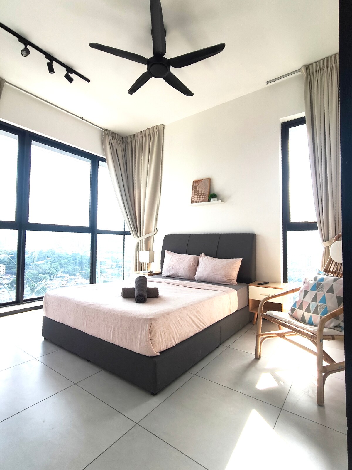 Onze gloednieuwe gezellige suite is perfect gelegen in het hart van Penang met gemakkelijke toegang tot lokale toeristische attracties. Japanse/Koreaanse restaurants en 7-11 supermarkt liggen direct onder ons huis! Lokaal eten, KFC & Pizza Hut ligt op 5 minuten lopen! Wij bieden • Geweldige gastvrijheidsdiensten • Zonsopgang en uitzicht op de stad • PS3 Entertainment en Netflix • 1 eigen parkeerplaats • 100 Mbps wifi • Uitzicht op het overloopzwembad • Volledig voorzien van airconditioning Als je van een rustige en gezellige plek in deze drukke stad houdt, wacht dan niet, boek nu!