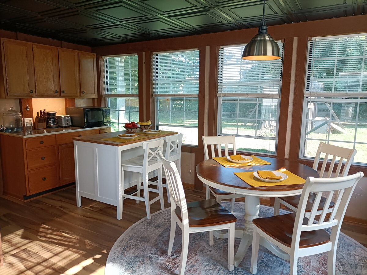 The Pond House, a vintage glass cabin filled with art, water views & eclectic vibes privately perched on the sacred grounds of Hackmatack Retreat Center. Native prairie, a winding slow river, two ponds, 200+ year old oaks & big sky- Countless places to curl up, gathering, focus-- nooks and crannies indoors and out, we offer “time out for time in” amidst this noisy world. Minutes from 2 small towns, all amenities, we're all about peace & ease-- let us custom curate your experience !