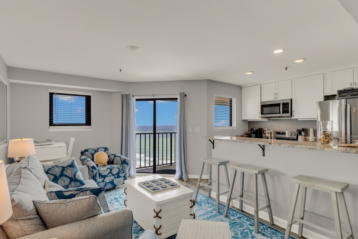 Join us at the front of this picturesque family friendly 33-acre gated community. Enjoy our 2 bed 2 bath condo with great views of the white beaches & rolling Atlantic Ocean tides. This condo offers a fully equipped kitchen with ample room for 6. While you’re here be sure to check out all the amenities including the Lazy River, Indoor and Outdoor Pools, Jacuzzies, Sport courts, Full Fitness Center, Play Areas, Snack Shack and Beach Bar. Condo-510B