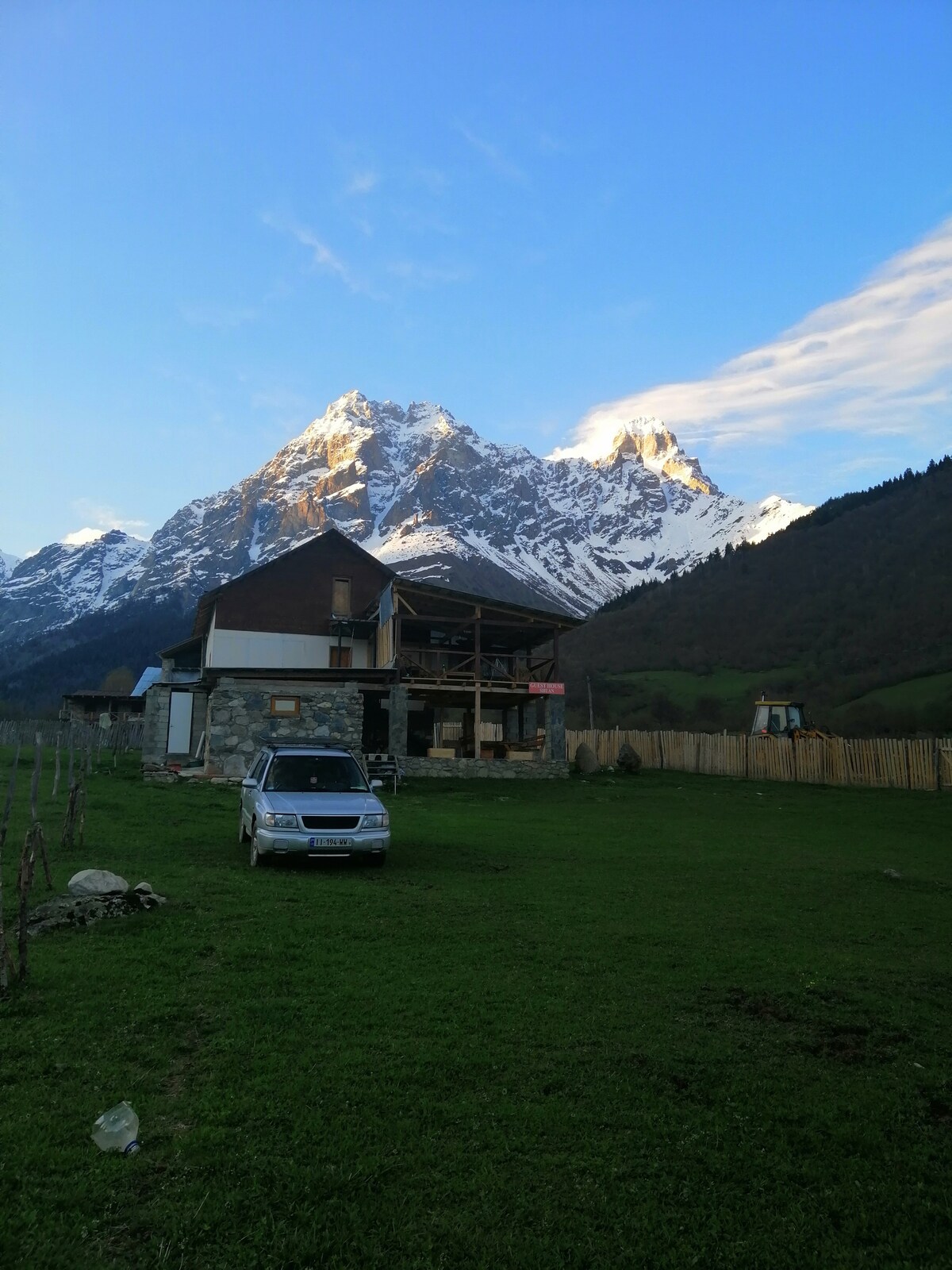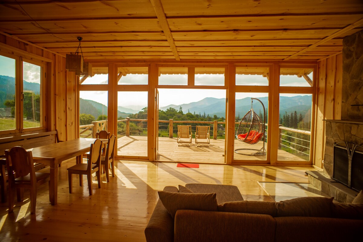 Ontspan en kom tot rust in deze vredige, stijlvolle ruimte. Dit pension wordt gerund door Gocha en zijn vrouw Nino. Gocha is zeer bekwaam in ambachtelijk werk. Het pension is ingericht met exclusieve ambachten gemaakt door Gocha's eigen handen. Het meest indrukwekkende is dat een kabelbaan eten naar het terras bracht.