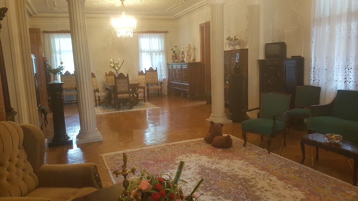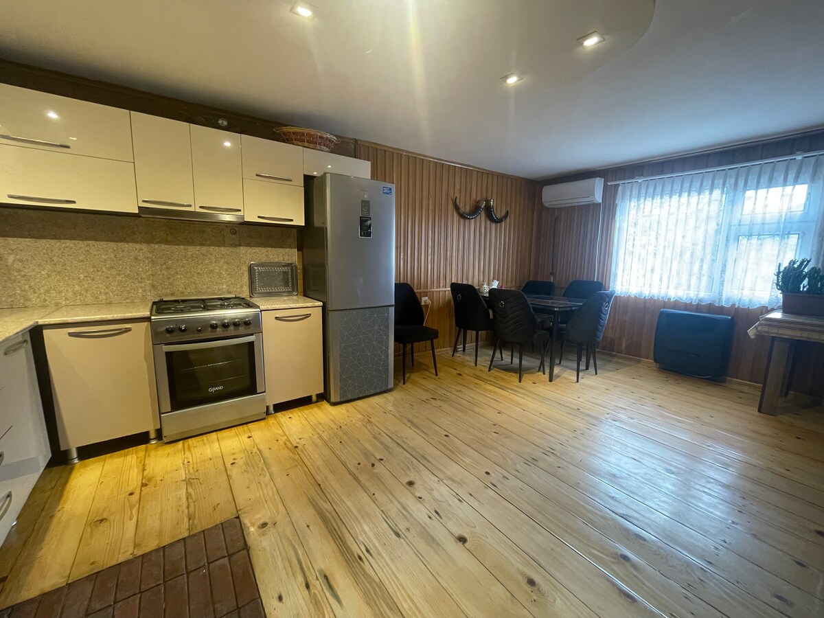 Ons huis ligt in de buurt van het bos, (maar het is 15 minuten lopen van het centrum). Je kunt dus koel en frisse lucht voelen. Vanaf het balkon kunt u genieten van het pittoreske uitzicht op de Kaukasische bergketen. Ons huis is perfect voor iedereen die de traditionele sfeer van Georgië wil ontdekken, zich ontspannen wil voelen rond het dennenbos en geniet van een grote tuin met mooie bloembedden en wijngaard. We kunnen aanbieden om heerlijke Georgische wijn te proeven.