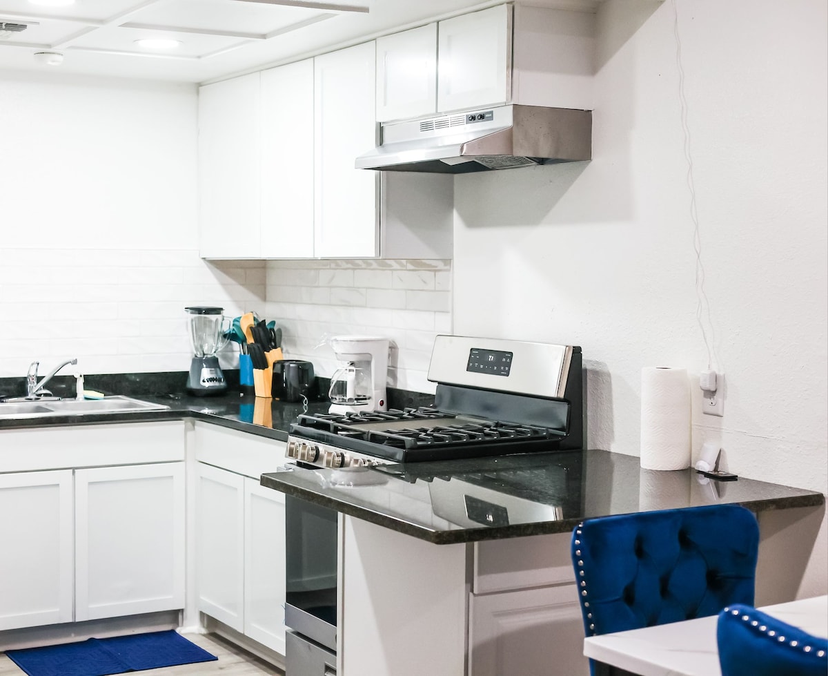 Welkom in Midland. We zijn op loopafstand van Gerardo 's Casita, Rosa' s Café en Taco DeVino. Dus als Mexicaans eten iets voor jou is, staan wij achter je. Deze accommodatie ligt aan een rustige straat op enkele minuten van het ClayDesta Business Center en het centrum. De huizen zijn licht en open met twee slaapkamers en een eigen badkamer in de master die een aparte ingang heeft voor de gastenkamer. De slaapkamers hebben 55 inch smart-tv 's, net als de woonkamer. De keuken is van alle benodigdheden voorzien als je wilt koken.
