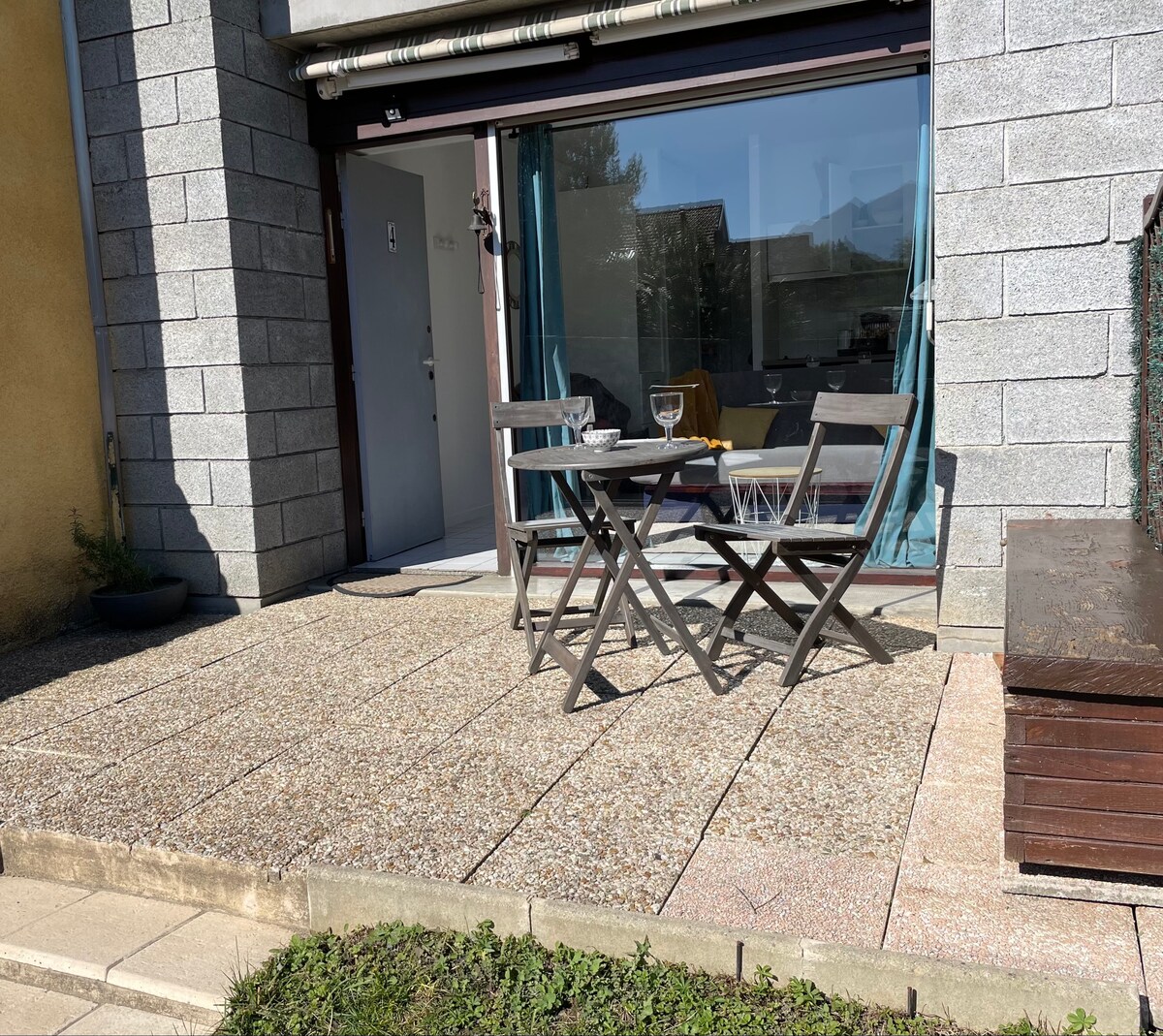 Gemeubileerde studio 2 personen of 3 voor een kind , mogelijkheid om een paraplubed toe te voegen voor een extra baby. Op de 2e en laatste verdieping, volledig gerenoveerd gelegen in het stadscentrum (op 50 meter van het stadhuis). Zeer aangenaam en licht met uitzicht op de bergen, met een kleine gemeenschappelijke tuin en een barbecue. Ideaal voor vakantiegangers en nieuwsgierigen . Woonkamer met slaapbank (140cm) , tv, uitgeruste keuken, badkamer met donut en een eigen parkeerplaats.