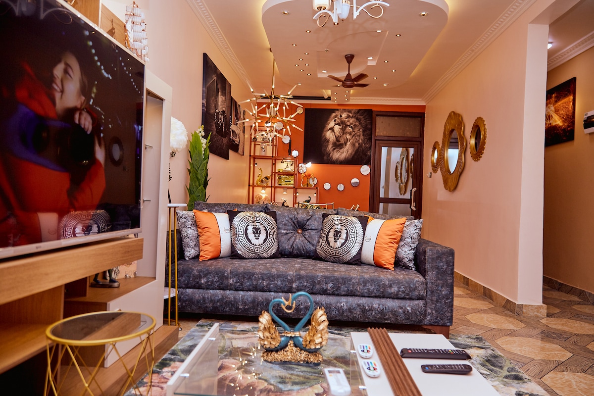 Dit appartement met één slaapkamer in het EVED Guesthouse & Apartment Estate is een heerlijk juweeltje voor een uitje als je op zoek bent naar een vakantieverblijf in Accra. Het spectaculaire landgoed stelt je in staat om tot rust te komen in een beveiligde en veilige omgeving. Ons back-up zonnestelsel en onze 24/7 beveiliging staat altijd tot je dienst. Chef-kok, chauffeur / luchthaven pick-up en rondleidingen zijn beschikbaar tegen kostprijs. Bel ons niet.