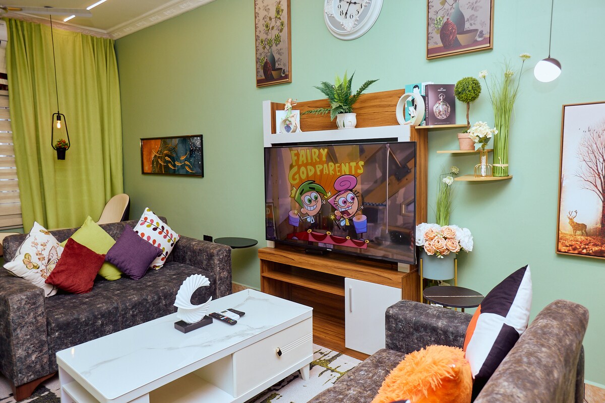 3 slaapkamer appartement met stijl bij Lashibi, aan klagon Road. Het is een rustige plek met luxe inrichting. De afstand tot de luchthaven is ongeveer 28 minuten. Het pand is gated en bewaakt door CCTV 24 uur per dag, zeven dagen per week. Het huis heeft drie slaapkamers, die beschikt over een eigen badkamer met 2 slaapkamers, ruime woonkamer, tv, Netflix en gratis parkeergelegenheid.