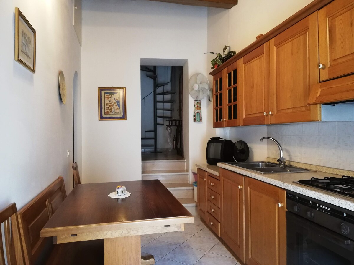 Karakteristiek huis in het hart van het historische centrum van Giglio Castello binnen de middeleeuwse muren. De deur is toegankelijk via een trap die eindigt met een mooie bloemrijke "mand” van waaruit u de hele steeg en de dorpskerk met zijn pittoreske klokkentoren kunt bewonderen. De mand is de Lilliaanse term die een ingangsbalkon identificeert.