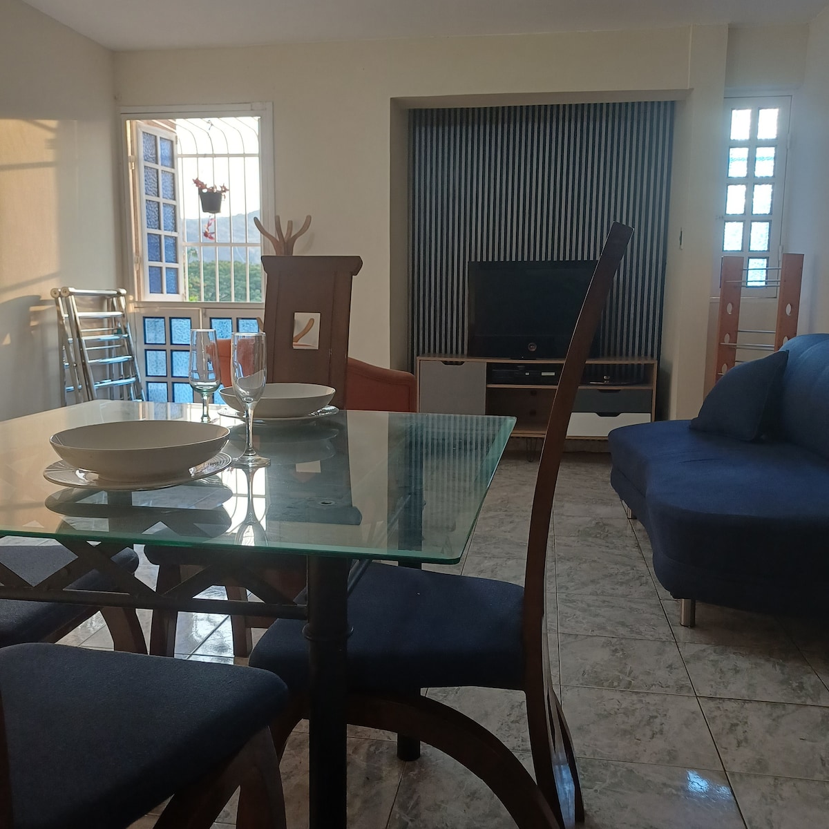 Ontspan met het hele gezin in deze rustige plek, gelegen ten noorden van Maracay parallel aan de Urb Andres Bello, de geneugten, met alles wat je wilt om te rusten en een paar dagen in de stad door te brengen, comfortabel, rustig, dicht bij alle restaurants en vrijetijdsactiviteiten van onze stad, met alle voorzieningen die je wilt 2 kamers, 2 volledige badkamers, 1 queensize bed, 2 eenpersoonsbedden, water, gasfornuis, waterkoker, wasmachine droger, wifi, tv met Simple TV. Geen elektriciteit