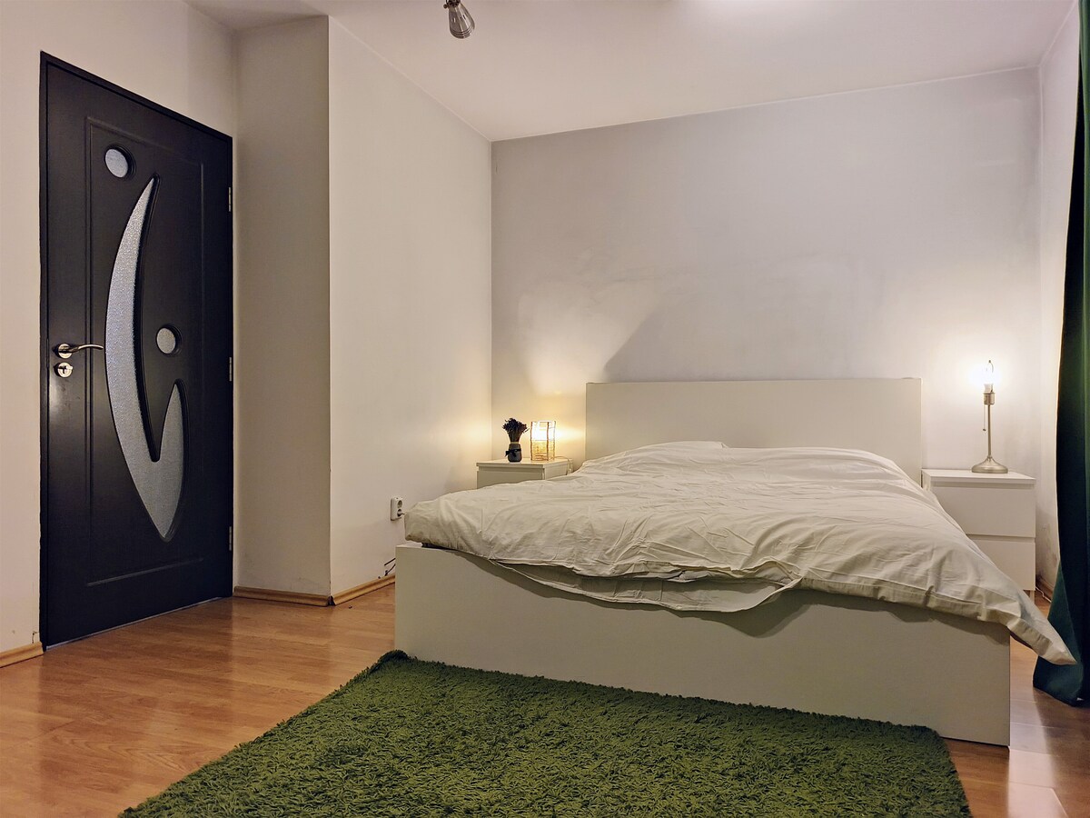 Het vriendelijke appartement van 83 vierkante meter ligt op 1 minuut lopen van metrostation Grozavesti, Carrefour Orhideea ligt op 5 minuten lopen, AFi Palace Cotroceni Mall ligt op 10 minuten lopen en Regie-deurms zijn vis-a-vis. Gasten kunnen ook slapen op de uittrekbare bank in de woonkamer De flat heeft 2 smart-tv 's met netflix youtube en 2 airconditioning voor beide kamers. Gasten kunnen genieten van een prachtig en vriendelijk uitzicht op de rivier de Dambovita en de Grozavesti-brug We verwelkomen al onze gasten met warmte:)