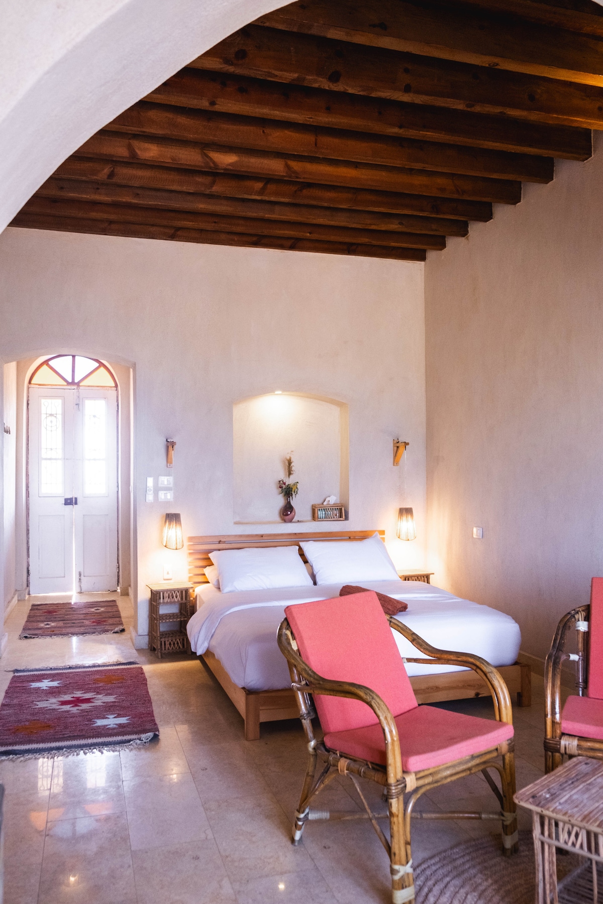 Een van de zes prachtig ontworpen kamers in ons charmante Bed&Breakfast 'Dar Bul Bul Bul'. Met tuin, zwembad en groot dak met uitzicht op het meer van Qaroun. Wij bieden ontbijt en kunnen je helpen bij het organiseren van alle activiteiten waarin je geïnteresseerd bent (bijvoorbeeld een reis naar de nabijgelegen woestijn). We kunnen ook een privéchauffeur uit Caïro voor je regelen, als je geen eigen auto hebt.