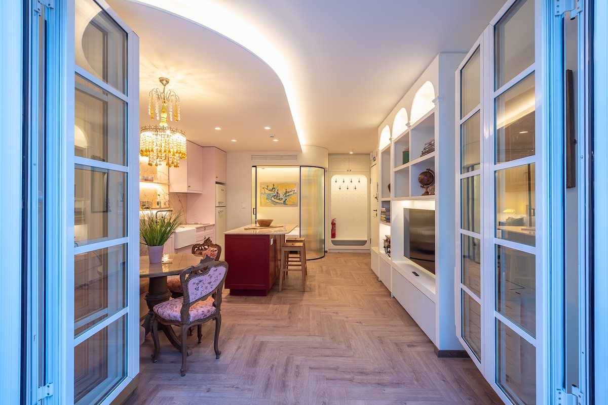A stylish apartment in Athens, owned and designed by Neta Dror, a designer and artist who has infused the space with her personal vision. This apartment has a unique space that combines old and new elements. The apartment has a large living room with a comfortable sofa, a dining table and a kitchen with all the amenities. The bedroom has a comfortable double bed and a hidden bathroom that surprises and delights. This apartment is more than just a place to sleep, it is a place to experience.