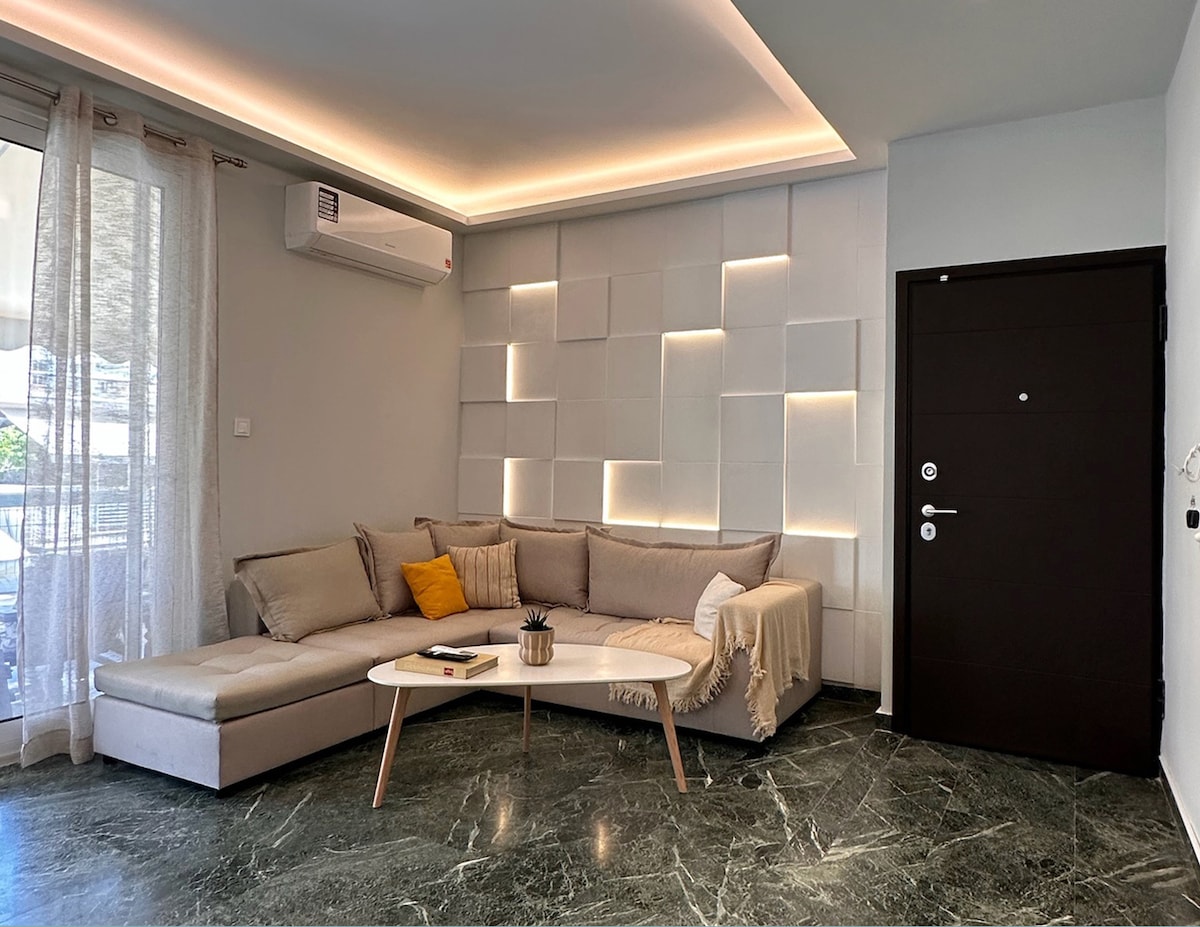 The Luxurious Apt near Metro station is a comfortable and sunny apartment, luxuriously renovated in 2023, next to the Ampelokipoi Metro Station, within the marketplace and near to various public transportation.