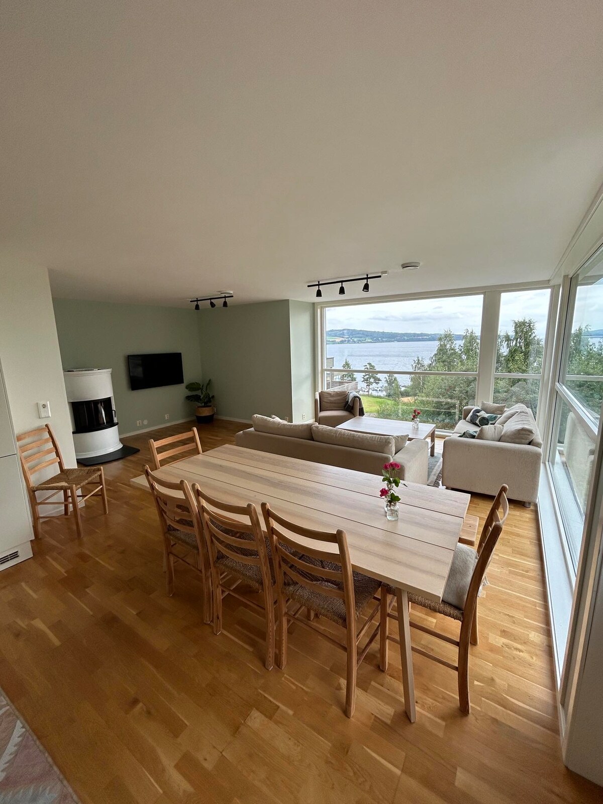 Charmant landhuis met topfaciliteiten en een prachtig uitzicht op het grootste meer van Norways, Mjøsa. Rustige, hondvriendelijke ruimte voor het hele jaar door gebruik, gelegen op slechts 30 minuten van de luchthaven van Oslo. Hier heb je directe nabijheid van de wildernis die wandelen, fietsen, zwemmen, vissen, langlaufen en verschillende speeltuinen voor kinderen biedt. Het huisje is luxe en volledig uitgerust, met wifi inbegrepen. Bedden en handdoeken kunnen gehuurd worden voor € 20, - per persoon.