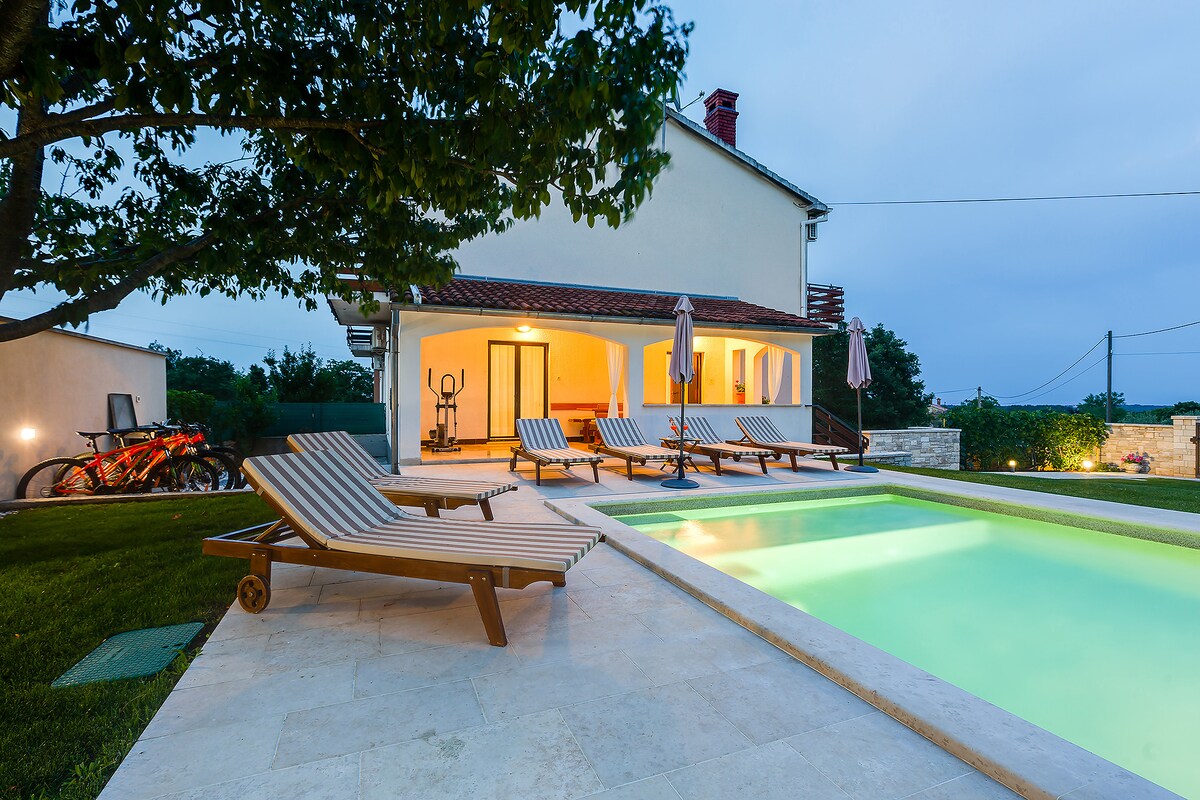 De locatie van deze villa biedt een uitstekende balans tussen rust en privacy. Ver weg van de drukte van de stad, maar toch dicht genoeg bij de bekende toeristische bestemmingen aan de kust. De dichtstbijzijnde kustplaatsen liggen op slechts een klein eindje rijden van de villa (15 km). Vanuit Fažana is het mogelijk om een boottocht te maken naar het Nationaal Park Brijuni. U kunt centraal Istrië bezoeken, genieten van het prachtige uitzicht en de Istriëse delicatessen proeven, zoals prosciutto, fuže en andere specialiteiten. Bezoek Pula, het Romeinse amfitheater, het prachtige Rovinj, het kasteel in Savičenta.