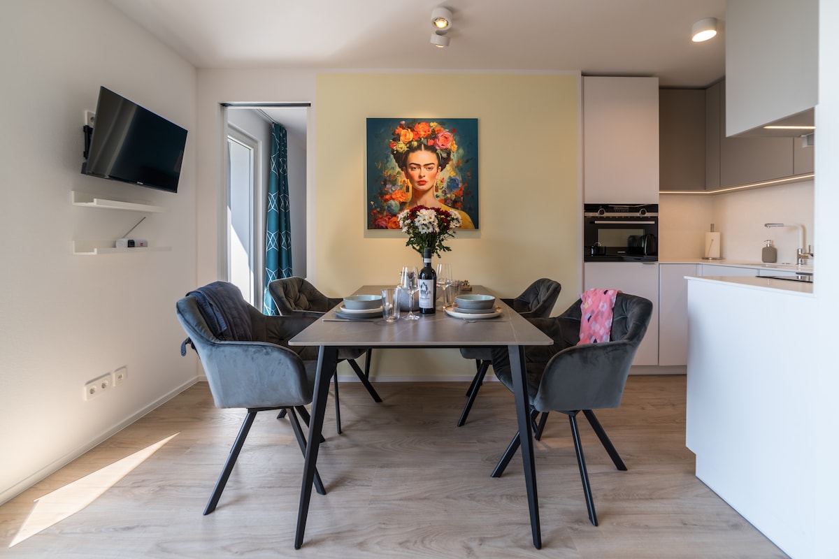 Stijlvol appartement aan zee met sauna en zwemvijver 🌊1. Locatie aan zee Op 🛋️ maat gemaakte meubels 🔥 Vloerverwarming en vinylvloeren 🛌 Boxspringbedden (180 x 200) 📺 2 smart-tv's in de woonkamer en slaapkamer 🚿 Raindance-douche op begane grond en dubbele wastafel 💇♀️ Haardroger en stijltangen 🍽️ Volledig uitgeruste keuken: espresso- en filterapparaat, melkopschuimer, magnetron 🧳 Waspakket, koffie, thee, toiletartikelen incl. 🚗 Gratis parkeren 🌙 Hoogwaardige zon- en verduisteringsbescherming 📶 Wifi inbegrepen