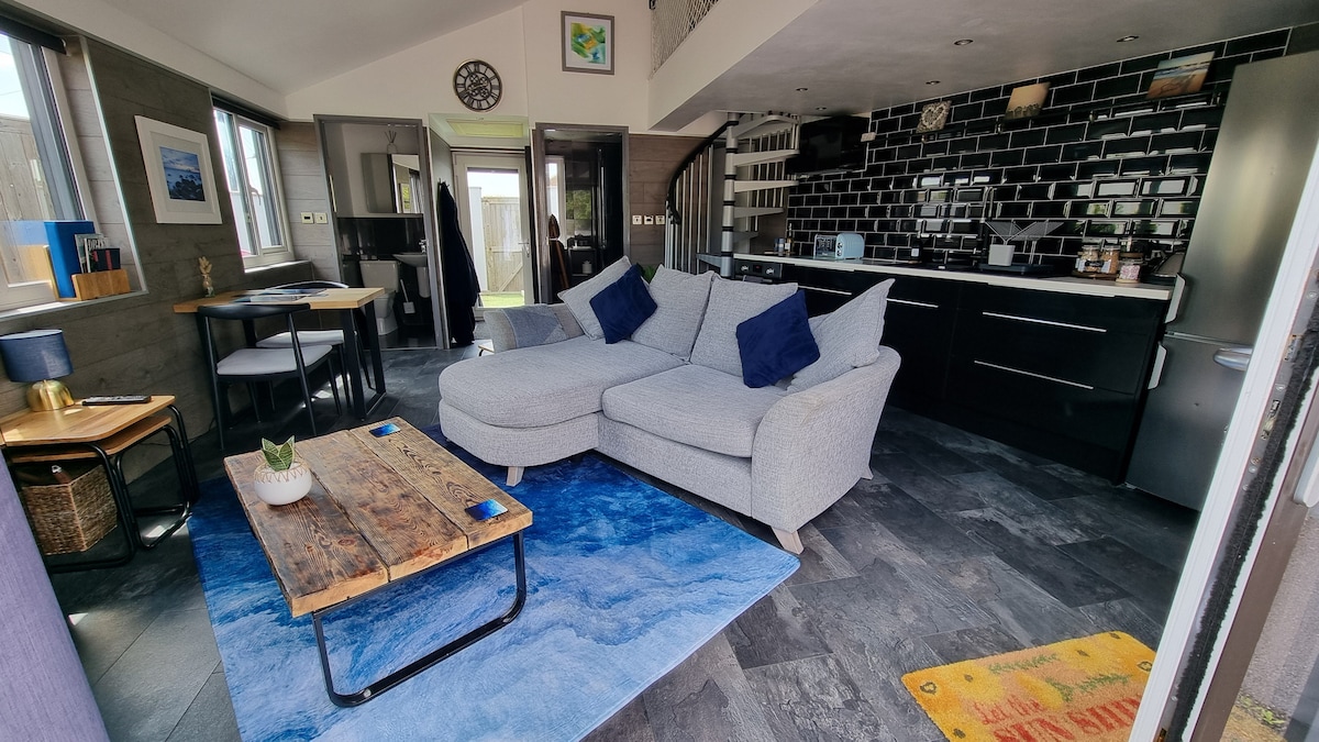 An Gwith is a modern, self-contained & fully equipped 1 bedroom detached studio annexe set in a peaceful semi-rural village with easy access to the city. The downstairs space has open plan living with a kitchen, lounge & dining area; separate toilet & spacious shower room. The spiral staircase leads to a cosy mezzanine level bedroom. There is also a patio & garden area with a private hot tub, perfect for morning coffee & relaxing in the evening. Ideal for couples & business travellers