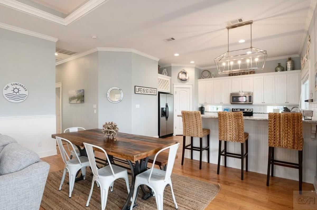 Geniet van het spectaculaire uitzicht op de zonsondergang vanuit onze veranda op onze afgelegen 2,5 kavels. De omgeving aan de baai biedt rust met weinig verkeer, in tegenstelling tot de luidruchtige woning aan het strand. Neem met voldoende parkeergelegenheid al je voertuigen, boten, karren en buggy 's mee. Je kunt in de buurt een golfkarretje huren en verschillende faciliteiten verkennen die toegankelijk zijn via een spannende golfkarretje of Highway 87 oversteken voor directe toegang tot het strand.