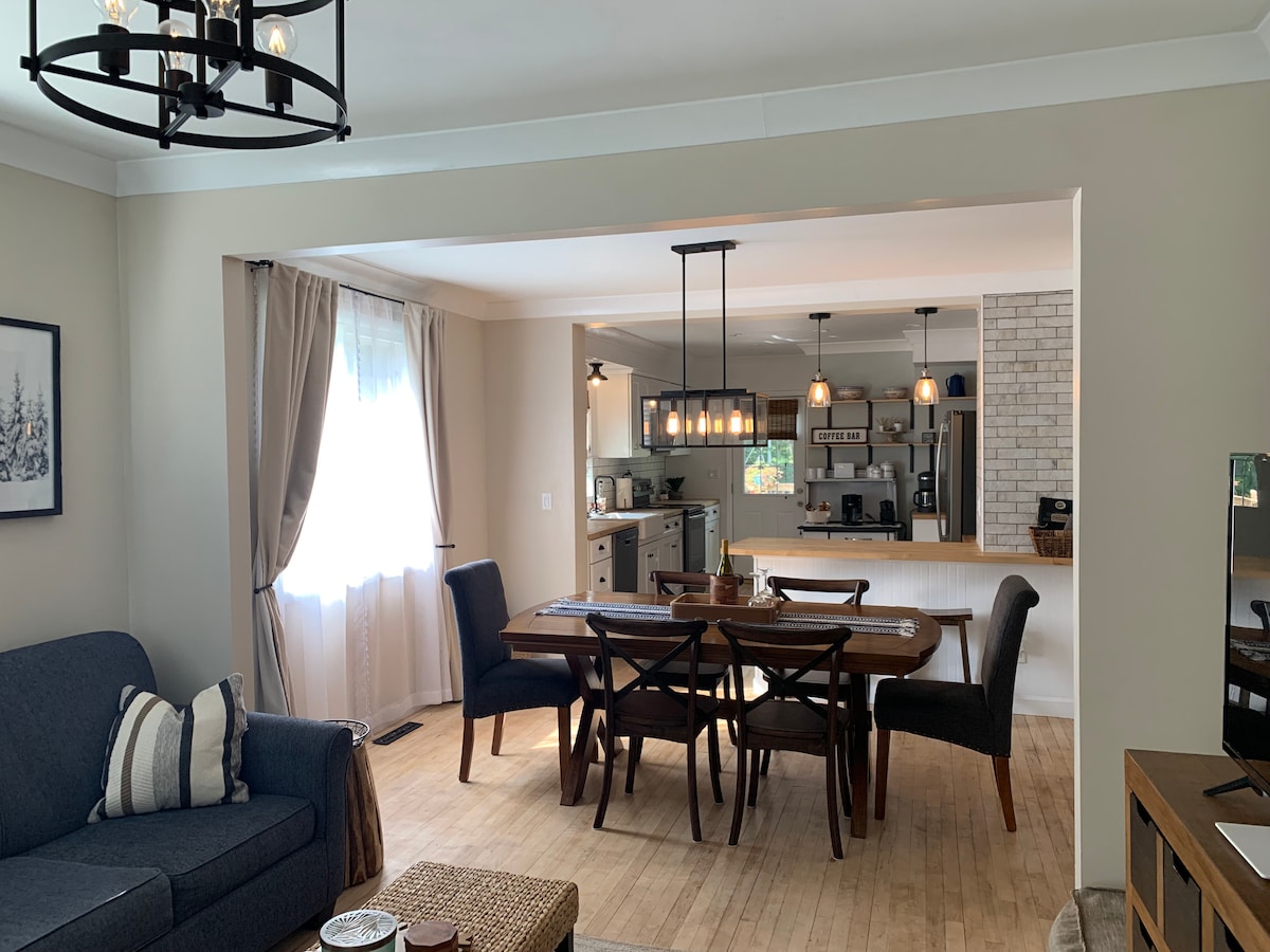 Ons vrolijke, extreem privé huisje ligt op 2 kavels en ruggen naar de Iron Belle Trail! Minuten naar Trails, Lakes & meer. Bijgewerkt van vloer tot plafond met een lichte en lichte AZ-moderne boerderij-sfeer. Leisteen apparaten in een afwaswater! gootsteen op de boerderij, aanrecht met slagersblok, koffie/Nespressobar omgebouwd van originele eigenaren 1894 fornuis, gerestaureerde houten vloeren, 3 seizoens veranda met console uit 1970 en vinyls voor je avonddans. Groot terras en vuurplaats wachten op je fles wijn of kopje koffie.