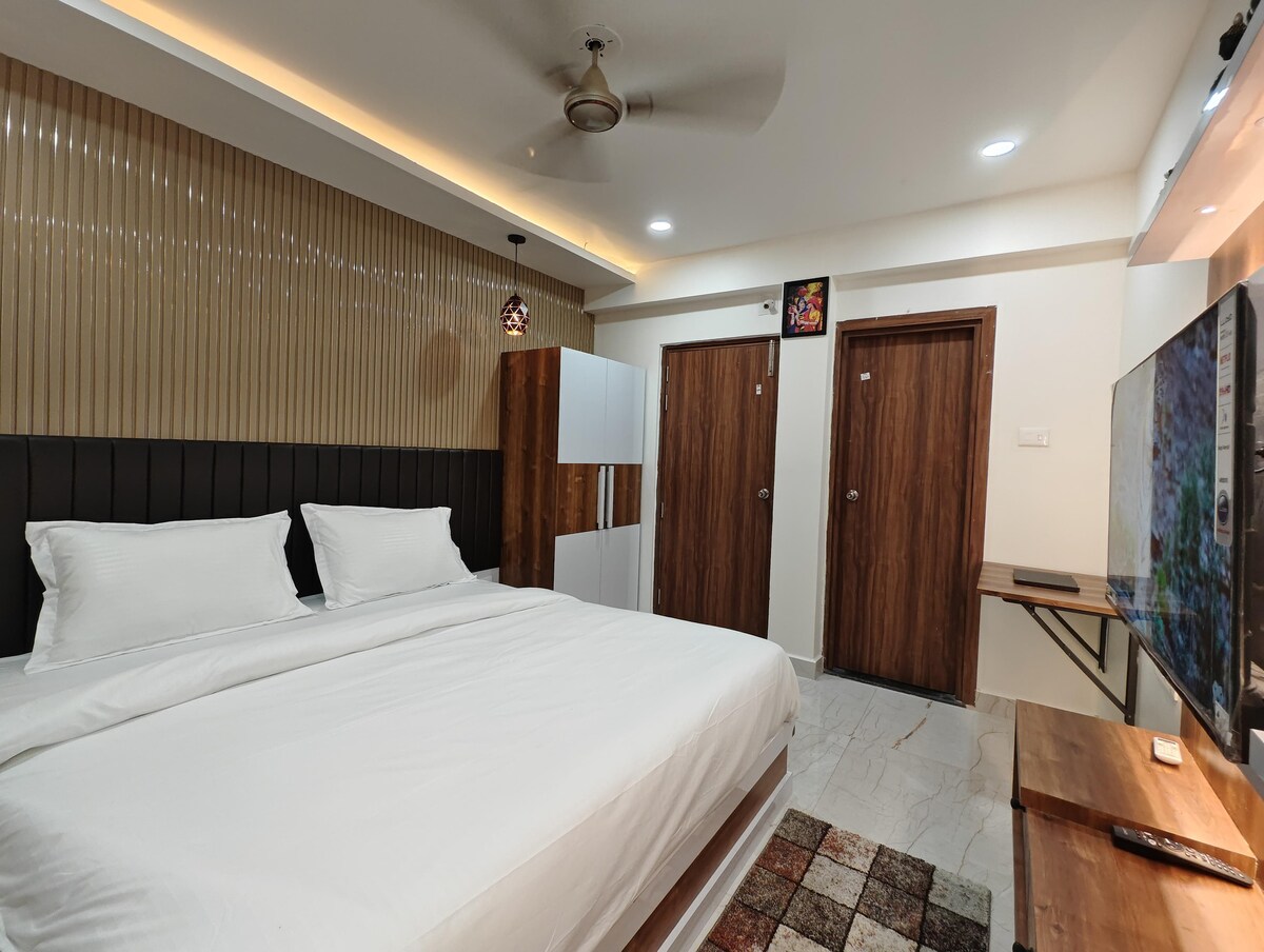 ⚠️Opmerking: vrijgezellen en ongehuwde stellen zijn niet toegestaan. Stijlvol 1BHK appartement in puri, op Station Road. Slechts 300 meter van het treinstation en dicht bij de bushalte. Het beschikt over esthetische interieurs, dagelijkse huishouding. Ideaal voor gezinnen of stellen die op zoek zijn naar comfort en gemak. Geniet van een rustig verblijf met tuktuk of auto toegang tot puri's stranden,cafés en het nachtleven. Je perfecte uitje begint hier!