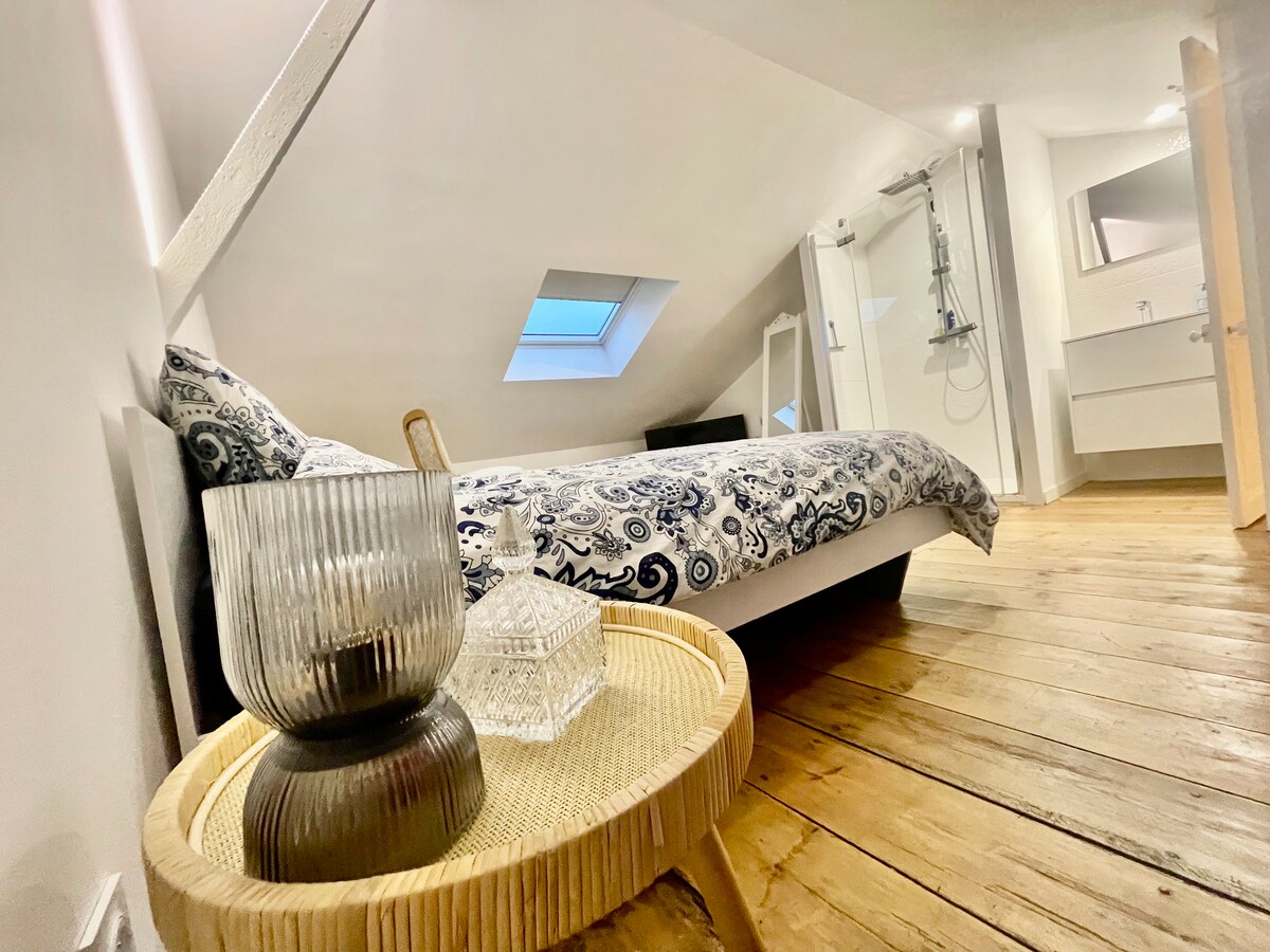 🌿 Charmant appartement met 1 slaapkamer 🍀 Met gratis parkeergelegenheid ✅️ ➡️ Gelegen in een oud gebouw in het hart van de wijk Madeleine in ⚜️ Angoulême ⚜️ Treinstation 🚆 : 🚶7 min Stadscentrum: 🚶♂️12 minuten Alle winkels/openbaar vervoer: 🚶🏽♀️twee minuten 😴 Slaapkamer - queensize bed en 🔅verlichting 🔆 verstelbaar via afstandsbediening ⚙️ 💤 Slaapbank 🛜 Zeer snelle wifi 📺 55 inch smart-tv 🎧 Thuisbioscoop 🍿🎥 NETFLIX 🍺| ⛱️Terras (🔜 Zomer 2026) € 10,- per persoon per dag toevoegen als je voor 2 personen met 2 bedden boekt