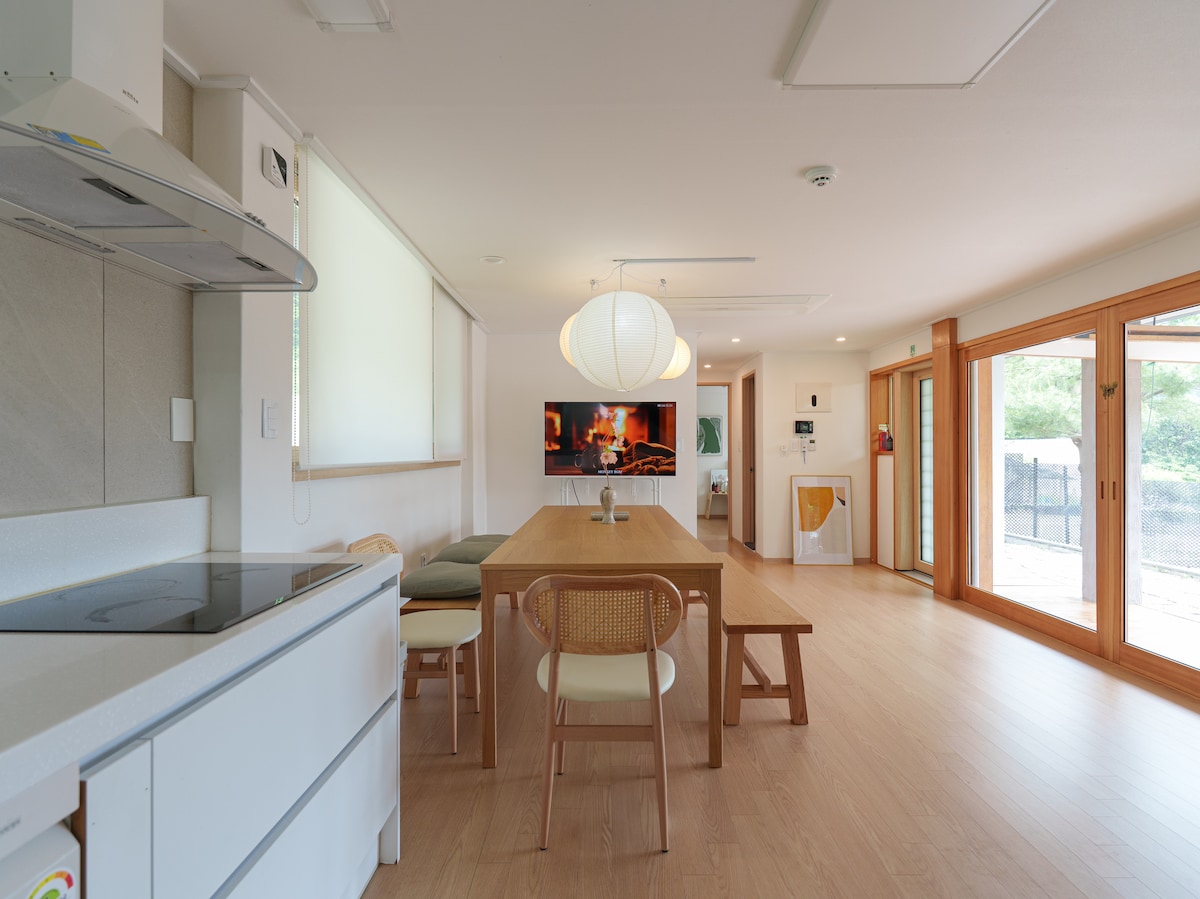 Dit is een 300-pyeong privéhuis gelegen in een rustig huisje dorp in de buurt van Seoul. Het is richting Namhyang, dus het ochtendzonlicht schijnt erg hartelijk. Het is de beste accommodatie voor lente kersenbloesems, zomerdalen, herfstgebladerte, wintersneeuw en vier seizoenen. Om schone en minimalistische accommodaties te bieden, willen we het maximumaantal gasten voorlopig beperken tot drie. Bij bezoek met baby 's jonger dan 2 jaar is het maximum 4 personen. Gasten kunnen zelfstandig gebruik maken van de eerste verdieping van het huis met twee verdiepingen en de tuin. Het huis van de eigenaar woont op de tweede verdieping en de ingang is voor een privétijd gescheiden naar de ingang. Het is een buurt waar rustige huizen worden verzameld, dus het is een goede accommodatie voor diegenen die genieten van een rustige rusttijd. [BBQ] Staande barbecue grill + grill kan worden voorbereid, en de extra kosten zijn 15.000 won. [open haard] * De open haard begint in het seizoen wanneer de temperatuur onder het vriespunt is. * De haard is brandgevaarlijk en de rook kan zich binnen verspreiden, dus de verhuurder zal hem zelf roken ~