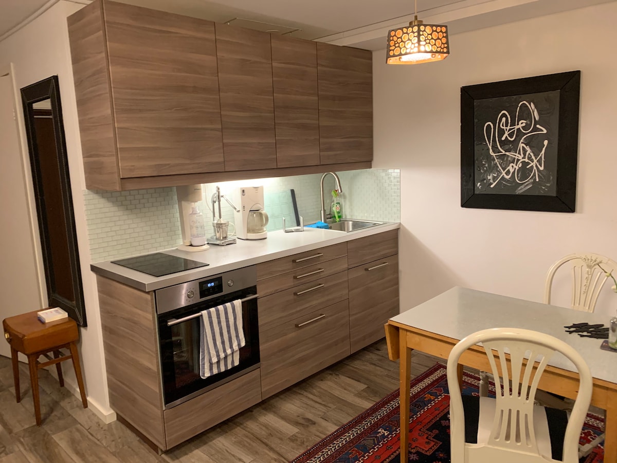 Ga er gewoon even tussenuit in dit rustgevende, centraal gelegen, goed ingerichte, knusse studio-appartement, waar u ook kunt genieten van de eigen buitenpatio. Een tramrit van 15 minuten brengt je naar Saltholmen, de poort naar de Göteborgse archipel of 25 minuten naar het centrum van de stad. Het ligt op loopafstand van Röda Sten en Nya Varvet, waar je restaurants met uitzicht op de haven vindt . De Zweedse vertaling is funky, het is geen loft het is beneden de trap en de ruimte voor uw koffers is gewoon dat 🤷♀️