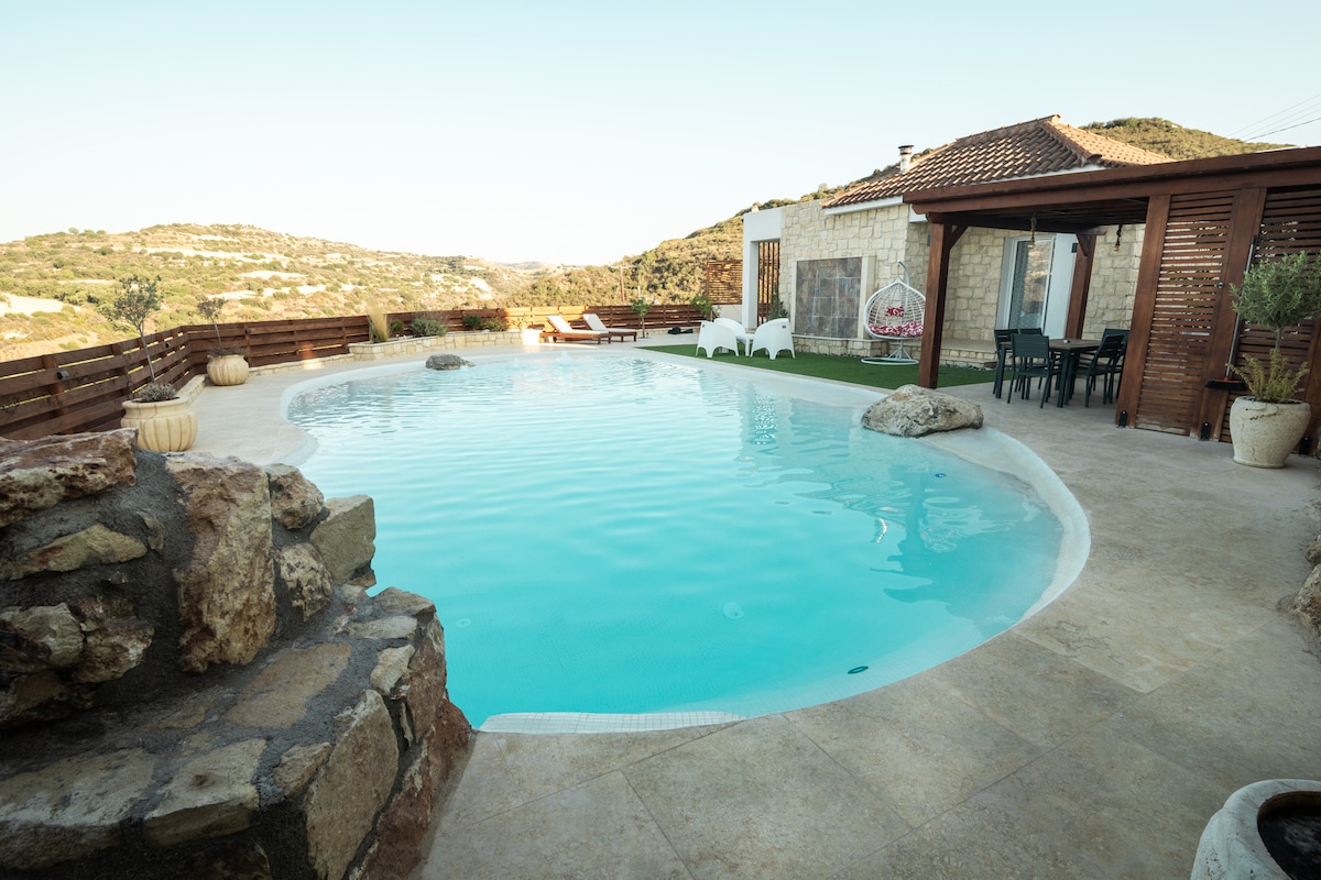 Stap in sereniteit! Ontsnap naar een zonovergoten schuilplaats op een rustige heuvel. Ontspan aan het zwembad, geniet van de zon en geniet van een adembenemend uitzicht op zee en gouden zonsondergangen. Onze twee charmante studio's liggen op slechts 15 minuten rijden van Paphos en zijn de perfecte uitvalsbasis om te verkennen. Stranden, natuurpaden, haven, Blue Lagoon en de oude stad van Paphos liggen allemaal op 15–30 minuten rijden. Gratis wifi, parkeren, een dorpsplein met tavernes en een vinobar, op slechts 4 minuten rijden. Auto is essentieel. Zwembad het hele jaar door geopend (niet verwarmd).