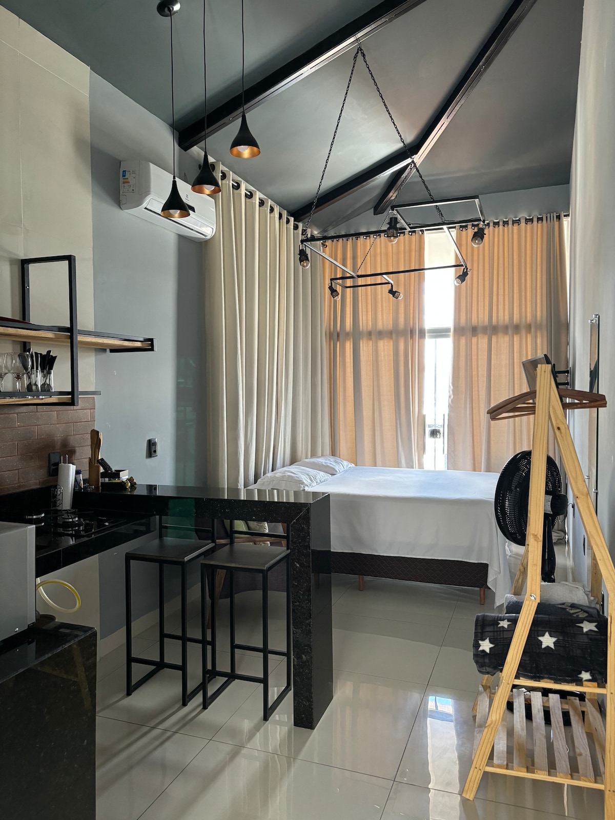 Ontdek je perfecte vakantiebestemming in onze geweldige loft! Deze moderne, gezellige ruimte is perfect voor stellen, solo-reizigers of maximaal 03 vrienden. - Espaço Aconchegante: Loft voltooid. Wat is er inbegrepen: - Keuken compleet: uitgerust met keukengerei, fornuizen en koelkast om je maaltijden te bereiden. - Gratis wifi. _ SMART TV MET APPS. - Airconditioning. Bedlinnen en handdoeken. - Gratis parkeren beschikbaar. - 1 Tweepersoonsbed - één enkel matras