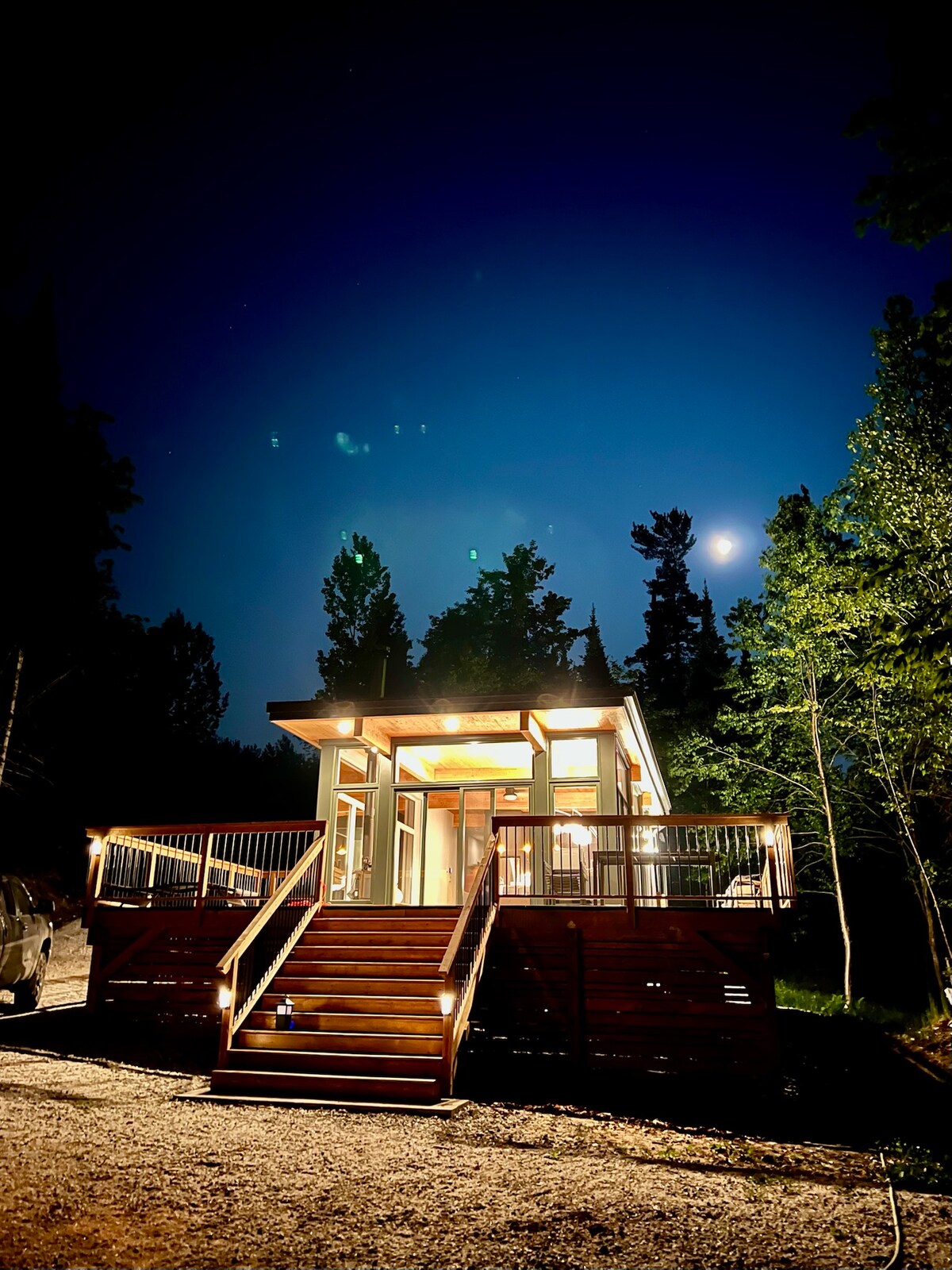 Ontsnap aan de rust van de natuur met een verblijf in Le Récif, een van onze prachtige huisjes langs de serene oevers van Blue Sea Lake. Onze hutten zijn zorgvuldig ontworpen om aan al uw wensen te voldoen. Bereid heerlijke maaltijden in een moderne en functionele ruimte tijdens je verblijf in de vrije natuur en geniet van het panoramische uitzicht vanuit de grote ramen. Ervaar de warmte van een houtkachel op koude avonden en het comfort van een groot zacht bed voor een goede nachtrust.