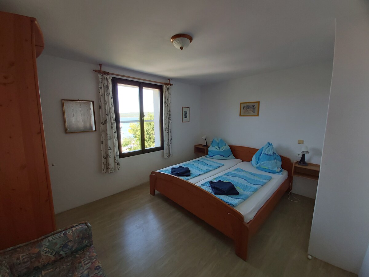 Prachtig uitzicht op de Adriatische Zee en de omliggende eilanden,de perfecte plek om te ontspannen en te genieten van de natuur op zijn best! Mooi en prive twee slaapkamer appartement 800 meter van het strand. Mooi terras en tuin met een barbecue, ligstoelen en een buitendouche. Volledige keuken met alle nutsvoorzieningen, waaronder vaatwasser en wasmachine, luchtcodering, tv en wifi. Twee bedden: één met twee eenpersoonsbedden, de andere met een tweepersoonsbed. parkeren is ook mogelijk zonder extra kosten.