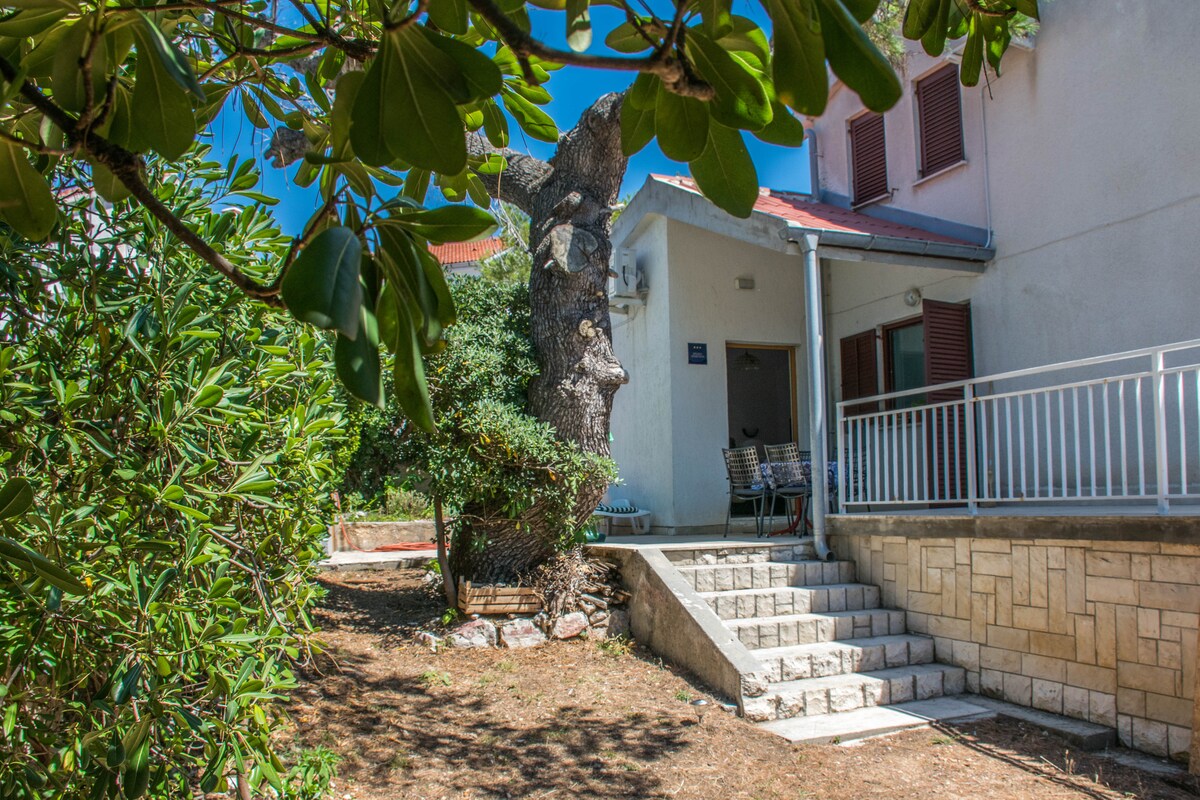 Studio appartement voor 2 personen met een aangename accommodatie en prachtig uitzicht op zee. De appartementen zijn onlangs gerenoveerd met alle apparatuur. Afstand van het strand is 30 m , centar-800 m, ambulance-500 m , restaurat -10, market-20.