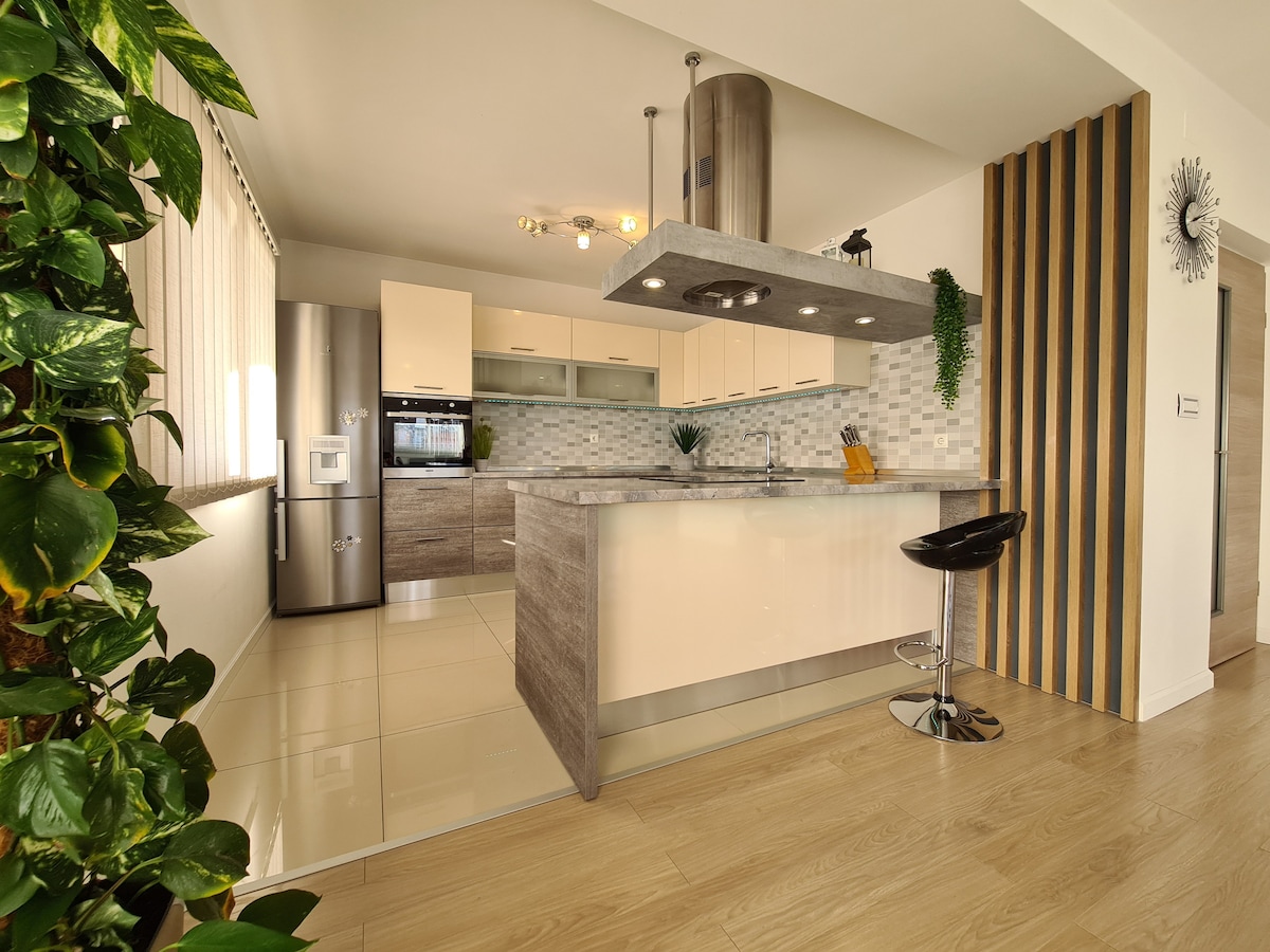 Modern en ruim appartement in Zadar (ongeveer 120 m2) . Je hebt volledige begane grond van het huis voor jezelf, met je eigen zwembad ( grootte 8x4 m. ) grote tuin met barbecue, 3 parkeerplaatsen en je eigen ingang. Accommodatie lijkt meer op een vakantiehuis omdat het het enige appartement te huur is in het huis. De dichtstbijzijnde winkel, koffiebar en markt liggen op 200 m. De stranden, het museum en de oude stad liggen op ongeveer 2,5 km afstand van het appartement.