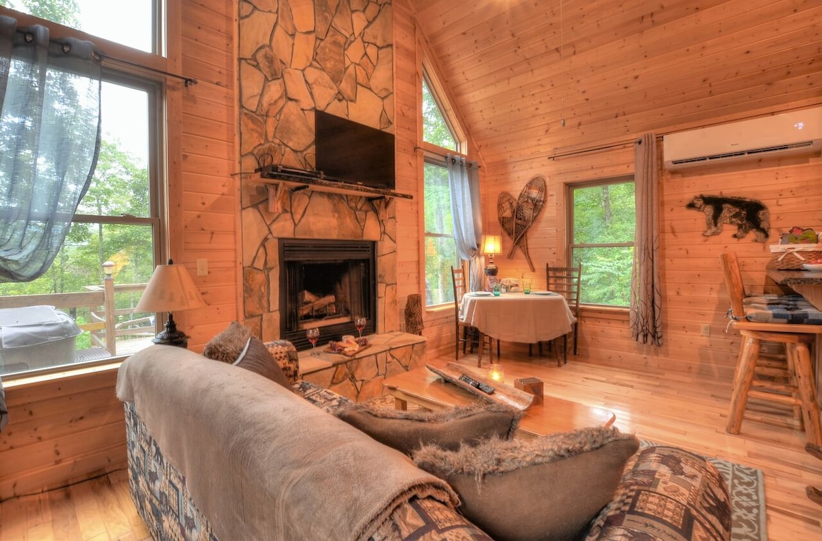 We are open! Sit in the rockers with your morning coffee, eat your meals at the kitchen table or sit in front of the fireplace all while enjoying the amazing view! The hot tub is located on the deck overlooking the beautiful Mountain View. We are just 20 minutes away from Bryson City and the Nantahala Outdoor Center, 10 minutes from Tsali Recreation, 25 minutes from the Smoky Mountain National Park, Cherokee and The Blue Ridge Parkway. There is a book in the cabin with other recommendations
