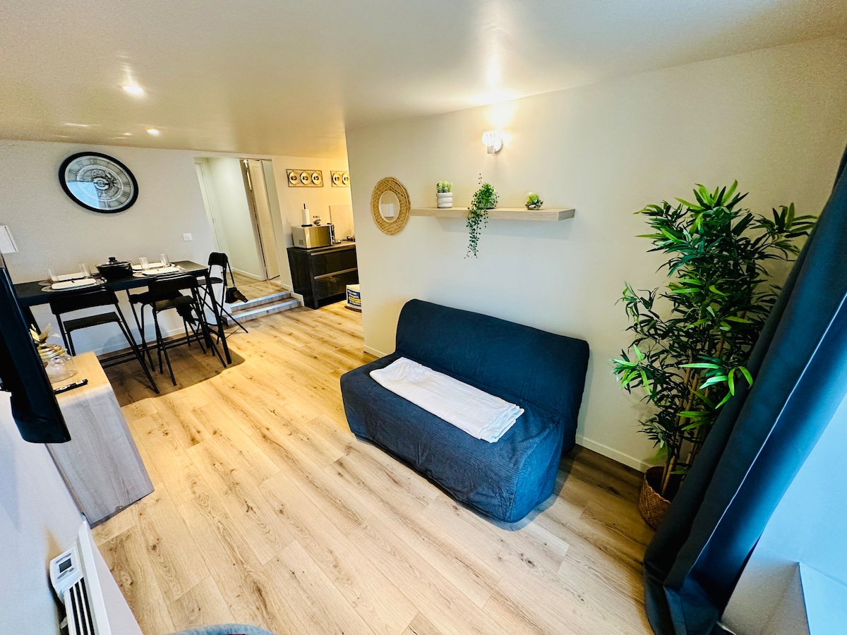 Lichte en gezellige accommodatie, ideaal gelegen in het hart van Falaise. Het ligt pal naast alle winkels (slager viswinkel supermarkt primeur bakkerij restaurants...), op slechts een steenworp afstand van de musea en het kasteel van Willem de Veroveraar en het watercentrum. Dit appartement is smaakvol ingericht, je zult je je goed voelen tijdens je verblijf in Falaise. Het heeft een ingerichte keuken, een woonkamer, een badkamer en een slaapkamer met opbergruimte voor je spullen.