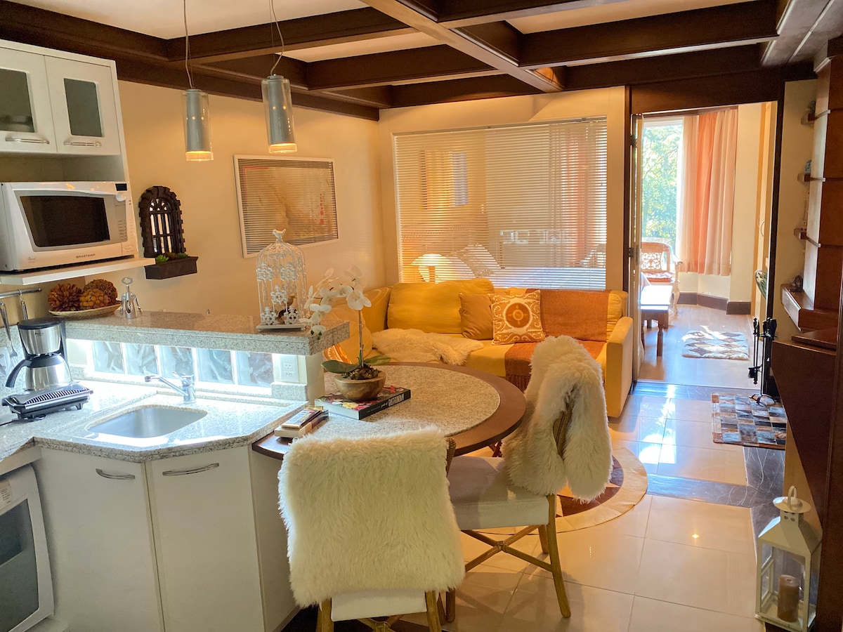 Onze suite is onlangs gerenoveerd en biedt meer comfort en welzijn voor onze gasten. Het is gelegen in een van de mooiste condo 's in de stad Canela. Omheinde gemeenschap, met prachtige plekken om van te genieten. Meren, zwanen die je kunt voeren, wandelpaden, uitkijkpunten, speeltuin met voldoende groene ruimte. We hebben hier goede momenten! We kijken ernaar uit om jou en je familie te zien! Kom en beleef gelukkige momenten in onze Flats!